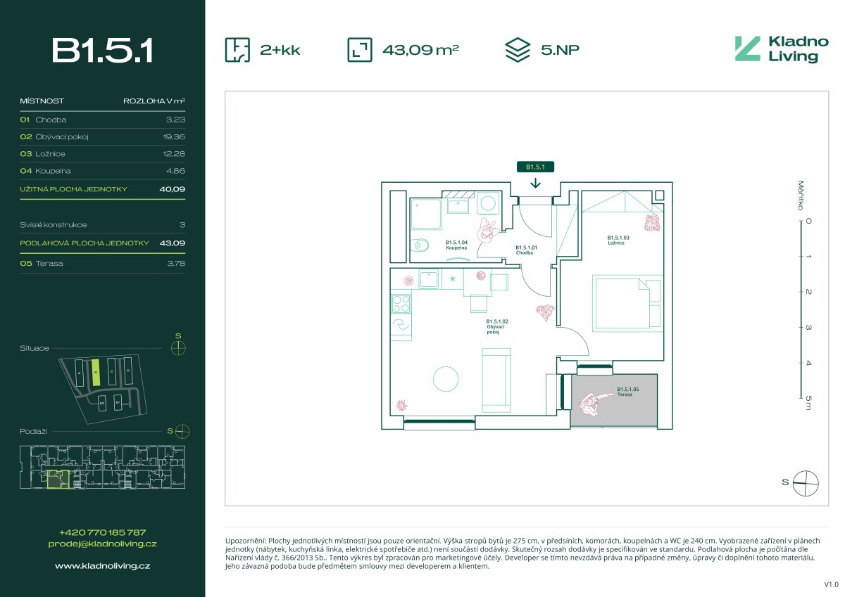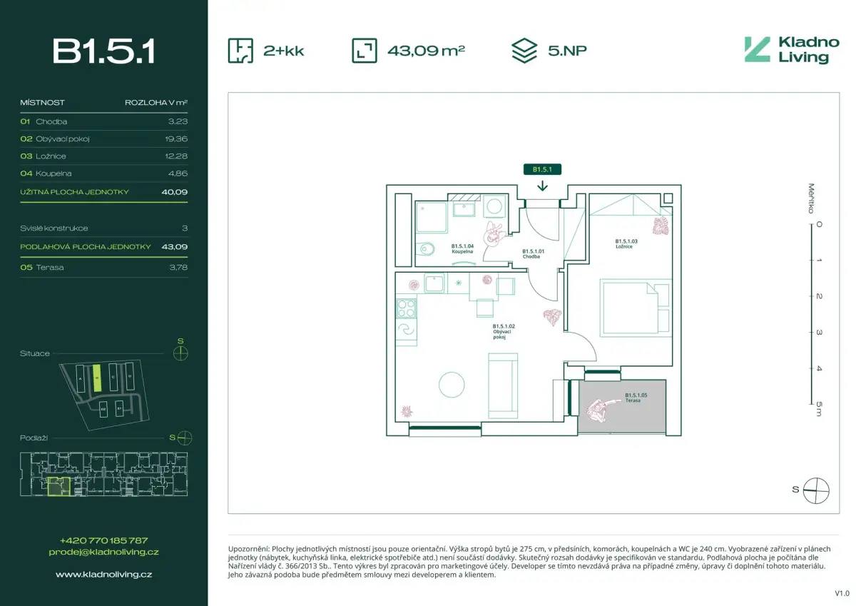 Nabízíme ke koupi moderní byt 2+kk o podlahové ploše 43 m² s terasou 3,8 m² v rezidenčním projektu Kladno Living, který vzniká v jedné z nejatraktivnějších lokalit města Kladno – Kročehlavy. Tento nový developerský projekt představuje jedinečnou příležitost pro ty, kteří hledají nové byty v Kladně nebo investici do nemovitosti s vysokým potenciálem zhodnocení.