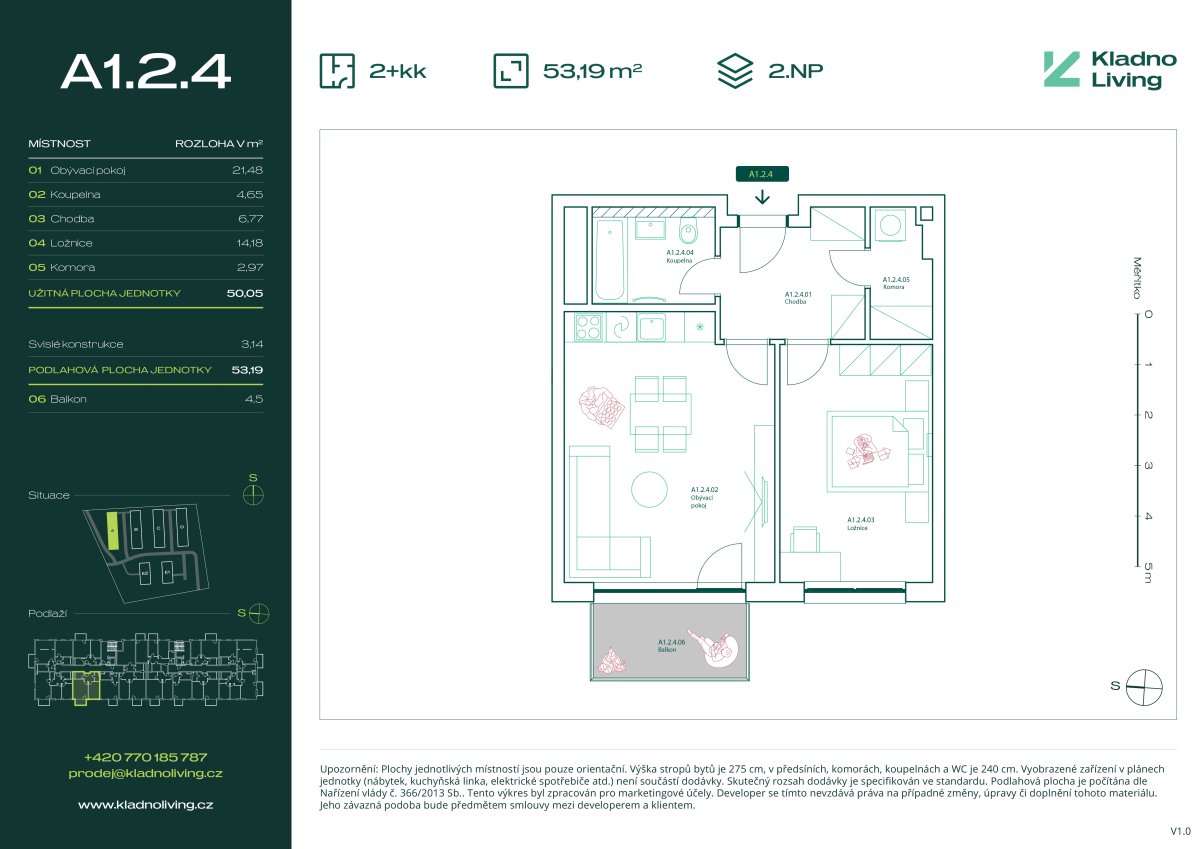 | KL-A128 | 2+kk | 1. patro | 48 m2 | 52 m2 | Ne / 5 m2 / Ne | Ne | Prodáno | Detail |