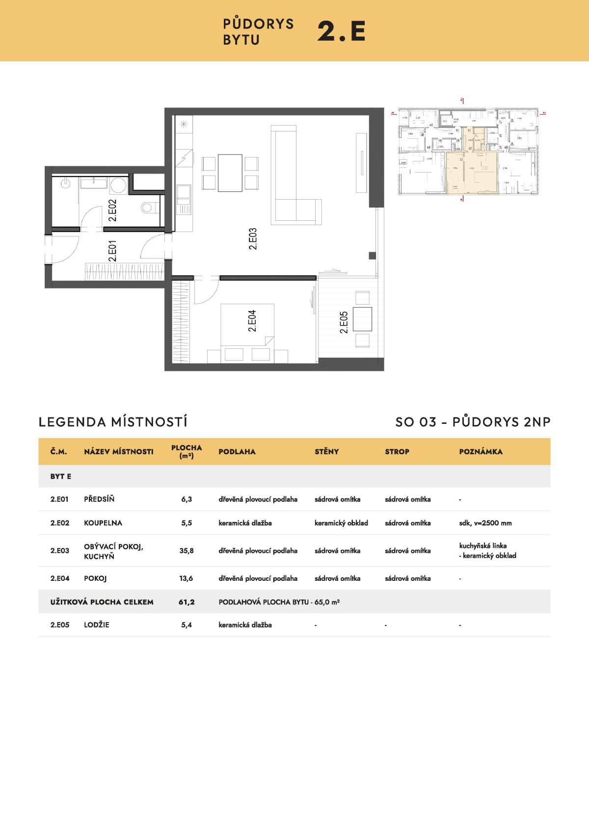 | NB-B3E | 2+kk | 2. patro | 53 m2 | 57 m2 | Ne / Ne / 5 m2 | Ne | 7 073 000 Kč | Detail |
