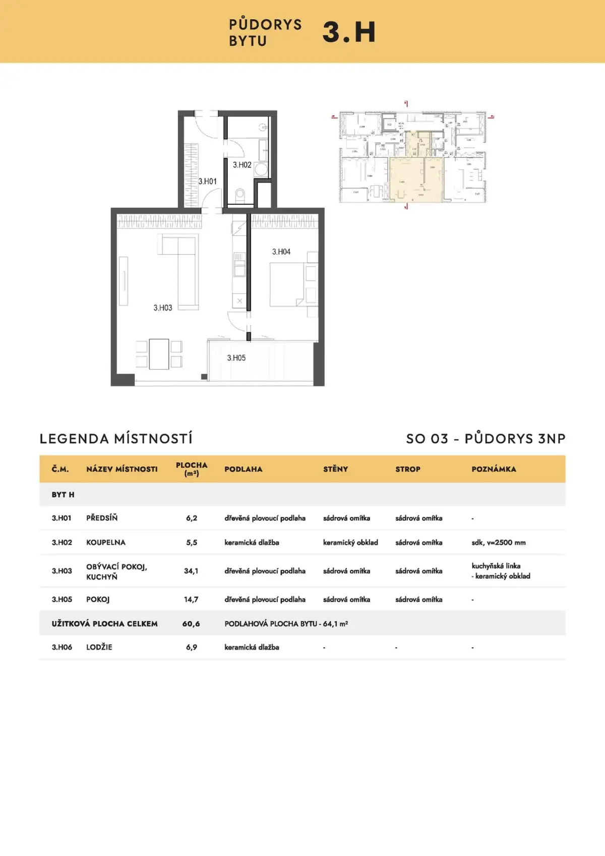 | NB-A3H | 2+kk | 2. patro | 61 m2 | 64 m2 | Ne / Ne / 7 m2 | Ne | Rezervováno | Detail |