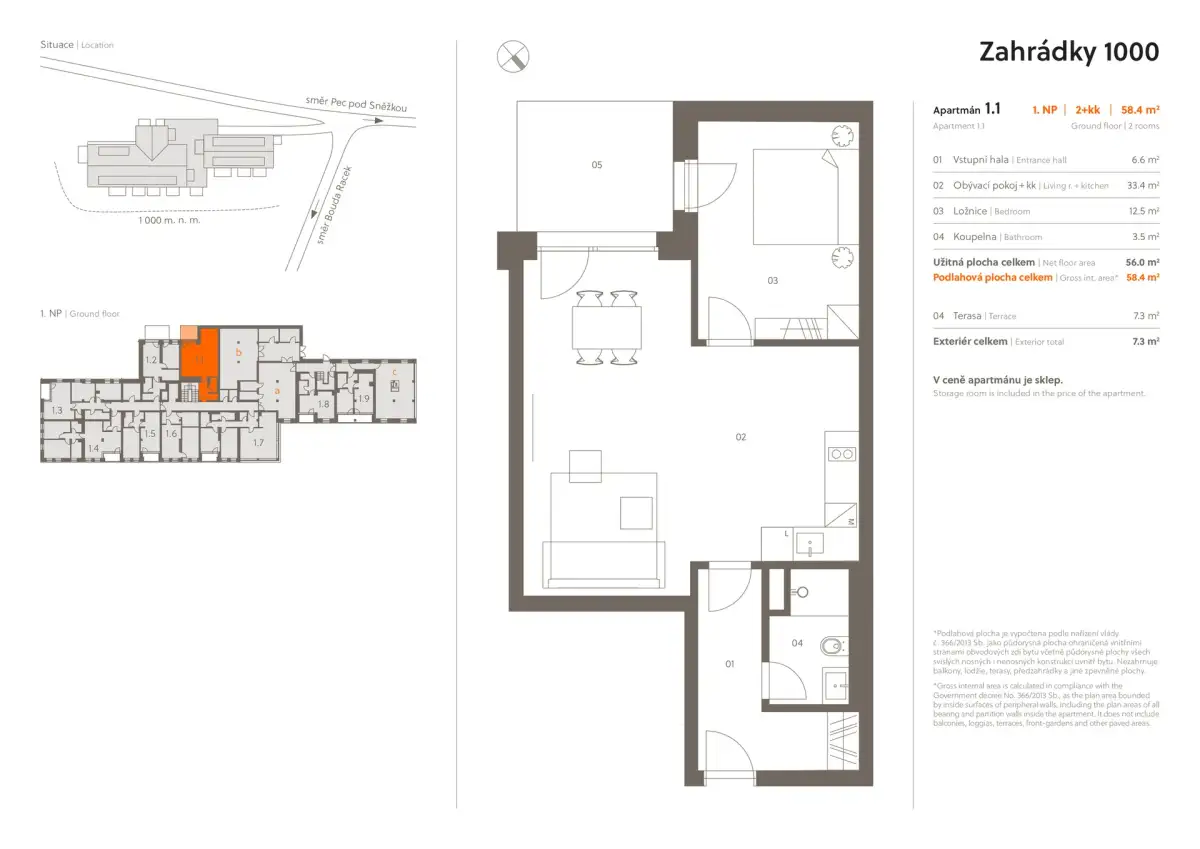 | Z1-1 | 2+kk | přízemí | 56 m2 | 58 m2 | 7 m2 / Ne / Ne | Ne | na vyžádání | Detail |