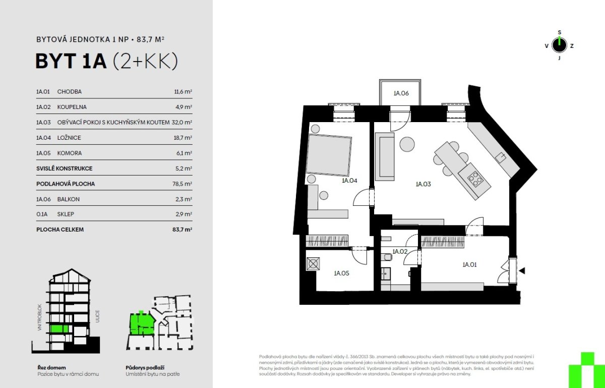 | VN67-02A | 2+kk | 2. podzemní podlaží | 73 m2 | Ne / Ne / Ne | Ano (25 m2) | 11 980 000 Kč | Detail |