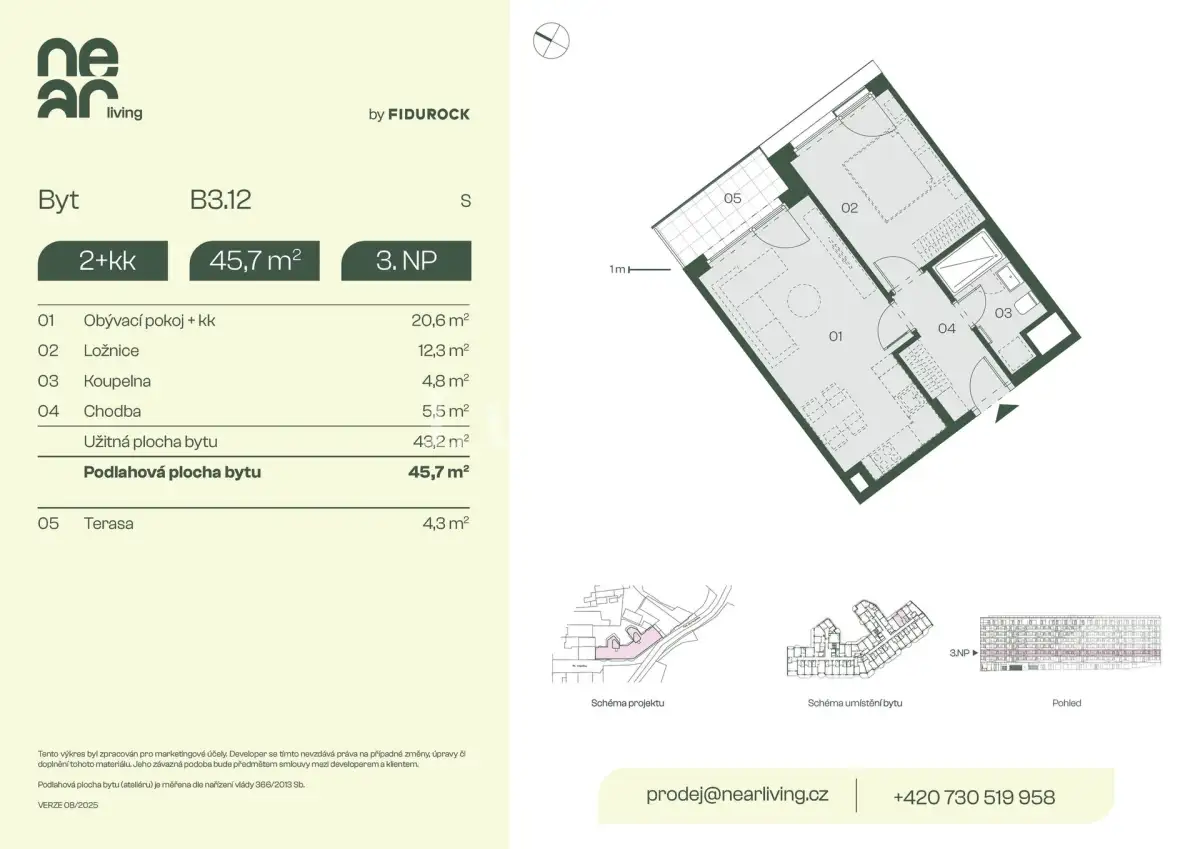 | NL-B308 | 1+kk | 2. patro | 26 m2 | 28 m2 | Ne / 5 m2 / Ne | Ne | Prodáno | Detail |
