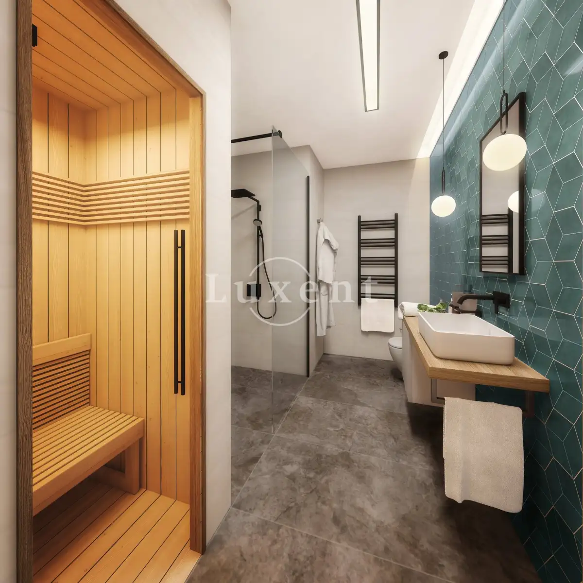 Součástí bytového komplexu je i fitness a wellness s vířivkou a saunou.