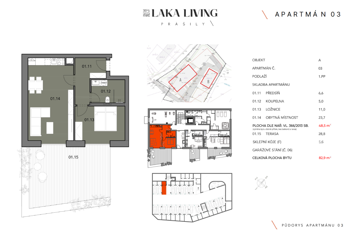 | LL-A01 | 2+kk | 1. podzemní podlaží | 91 m2 | 60 m2 | 22 m2 / Ne / Ne | Ne | na vyžádání | Detail |