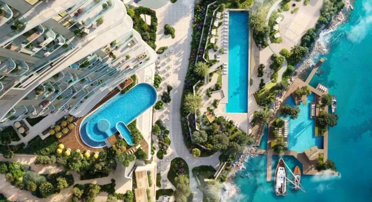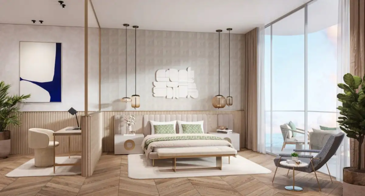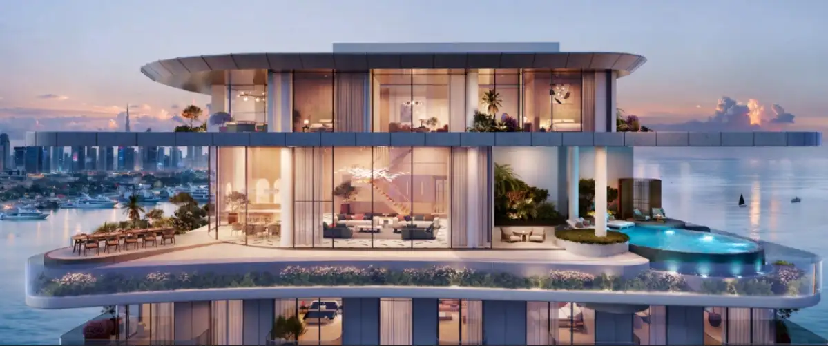 Tato jedinečná stavba s odvážným designem a charakteristickým 45° náklonem se stala ikonou na dubajském pobřeží. Organicky se vinoucí terasy splývají s okolní krajinou, vysunuté balkony a kaskádovité terasy rámují dechberoucí výhledy. Průhledné skleněné zábradlí stírá hranice mezi interiérem a panoramatem zálivu. Design je doplněn o sofistikované retro prvky, které dodávají celku nezaměnitelný charakter.