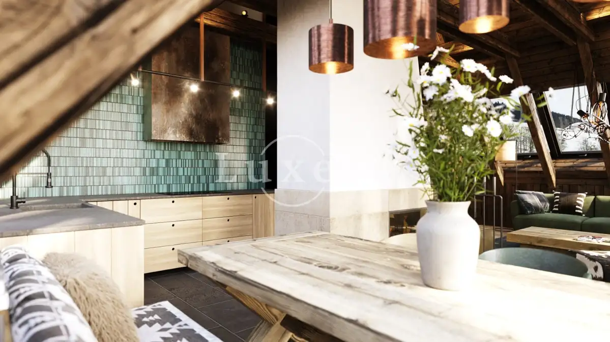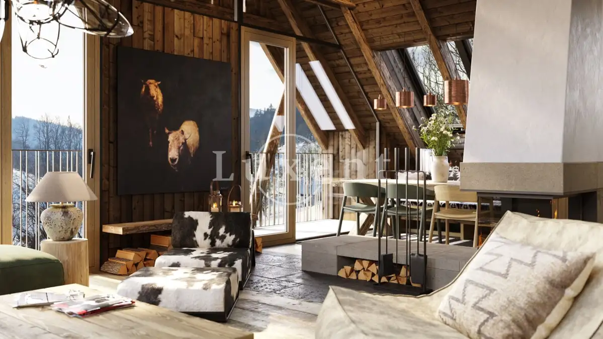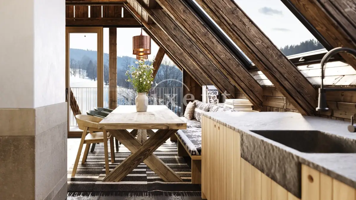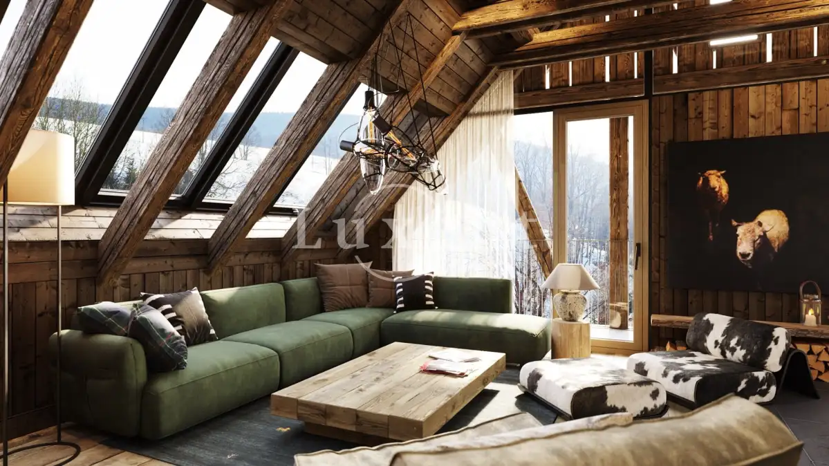 V nově vznikajícím butikovém projektu Apartmány Albeřice v údolí Horního Maršova nabízíme luxusní střešní apartmán s atmosférou horské chalupy. Apartmán se hodí pro druhé rodinné bydlení i k investici. Dispozice 3+kk a plocha 83,9 m2 je doplněná dvěma lodžiemi (4,9 m2 a 9,1 m2). Celková plocha 97,9 m2 je prakticky rozložena, s dostatkem úložných prostor. Apartmán má jako jediný ve 4. NP domu své soukromí a je orientován ložnicemi na sever a obývací pokojem a lodžií na jih a západ. Každá ložnice má vlastní koupelnu (jedna en-suite). Pro uložení věcí slouží samostatná šatna. Apartmán je vybaven ve vysokém standardu s obklady rustikálním dřevem. K apartmánu patří prostory v samostatné kolárně a lyžárně s uzamykatelnými boxy. Je možné si koupit také venkovní kryté parkovací stání. Vytápění domu bude probíhat tepelnými čerpadly. Součástí standardu apartmánů jsou venkovní žaluzie i chytré řízení. Více info najdete na webu projektu. Projekt dosahuje mimořádné energetické úspornosti třídy A.