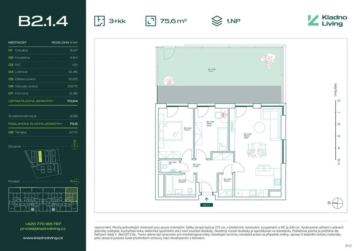 | KL-B114 | 3+kk | přízemí | 71 m2 | 76 m2 | 47 m2 / Ne / Ne | Ne | 7 940 000 Kč | Detail |