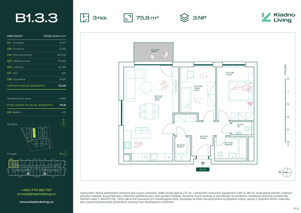 Nabízíme ke koupi moderní byt 3+kk o podlahové ploše 75,8 m² s balkonem 4,5 m² v rezidenčním projektu Kladno Living, který vzniká v jedné z nejatraktivnějších lokalit města Kladno – Kročehlavy. Tento nový developerský projekt představuje jedinečnou příležitost pro ty, kteří hledají nové byty v Kladně nebo investici do nemovitosti s vysokým potenciálem zhodnocení.