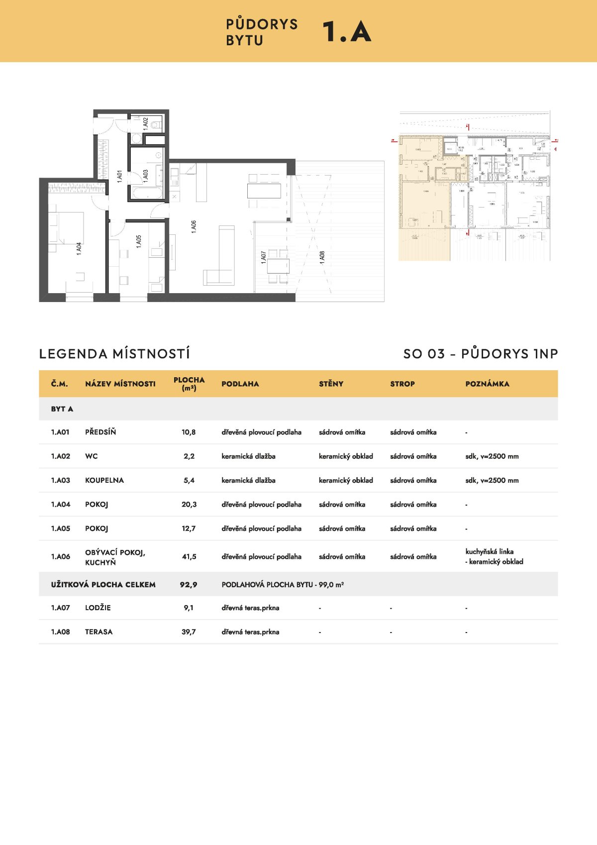 | NB-A1A | 3+kk | přízemí | 93 m2 | 99 m2 | 40 m2 / Ne / 9 m2 | Ne | Rezervováno | Detail |