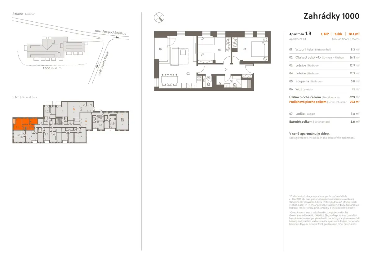 | Z1-3 | 3+kk | přízemí | 67 m2 | 70 m2 | Ne / Ne / 4 m2 | Ne | na vyžádání | Detail |