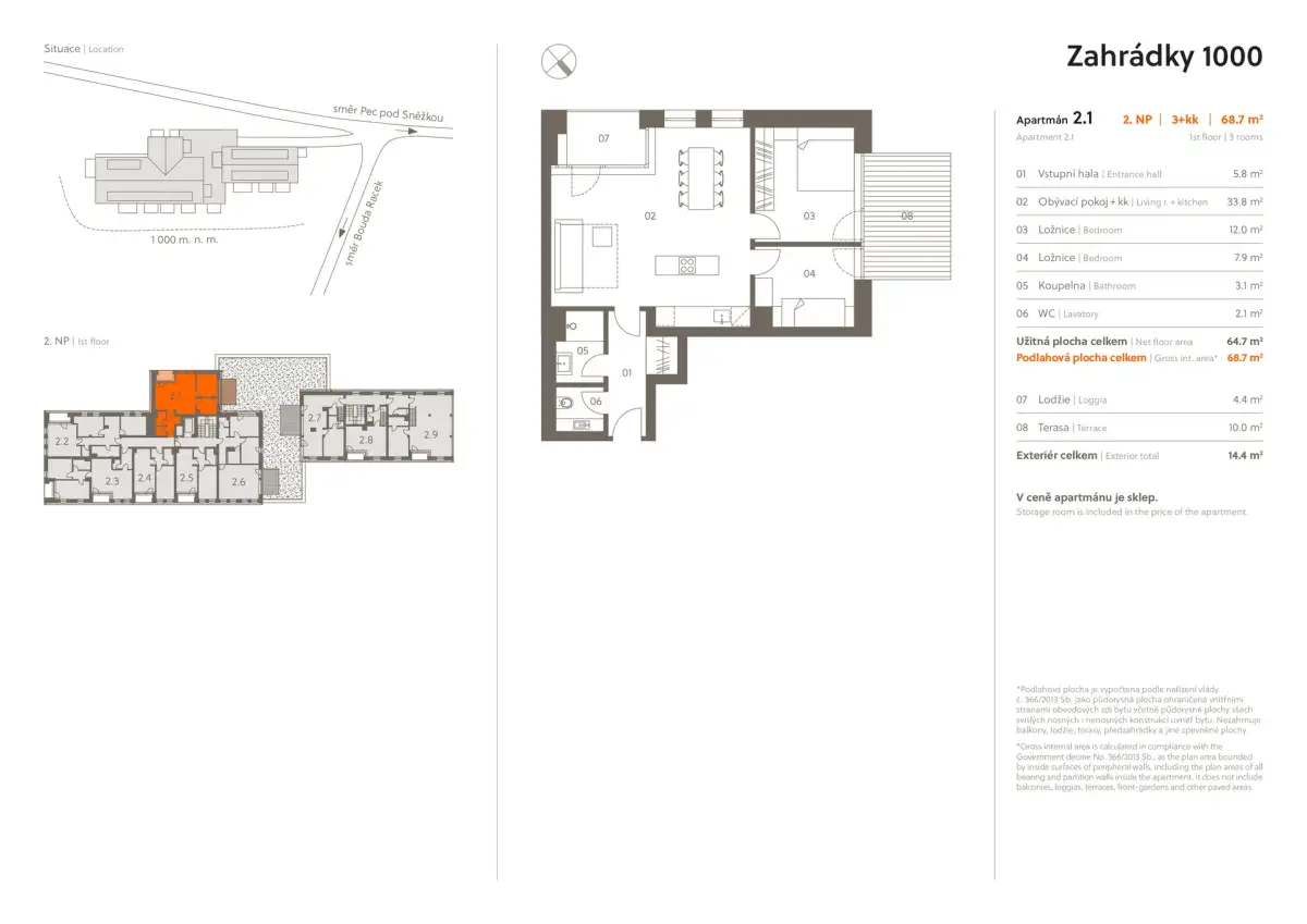 | Z2-1 | 3+kk | 1. patro | 65 m2 | 69 m2 | 10 m2 / Ne / 4 m2 | Ne | na vyžádání | Detail |
