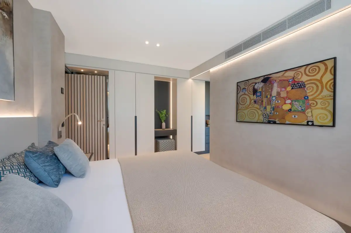 Tento elegantní 3+kk apartmán nabízí velkorysé obývací prostory s kuchyňským a jídelním koutem, dvě ložnice, obě s vlastními koupelnami a velkou střešní terasu s venkovním nábytkem, sprchou a především úchvatnými výhledy. Elektrická pergola "Bioclimatic Sun Protection" a dálkově ovládané markýzy zajišťují pohodlí a ochranu před sluncem. Nemovitost je vybavena energeticky účinným systémem tepelného čerpadla nejnovější generace pro klimatizaci a podlahové vytápění.