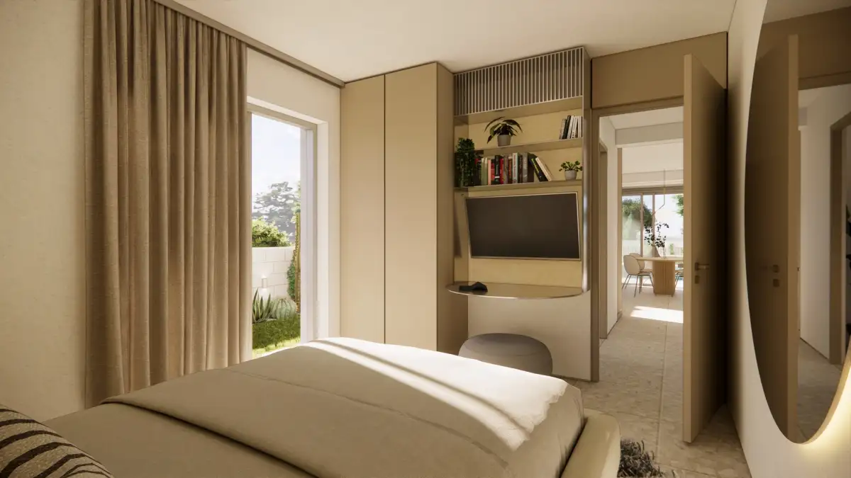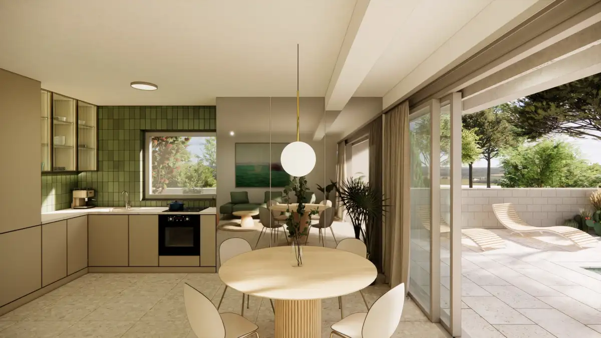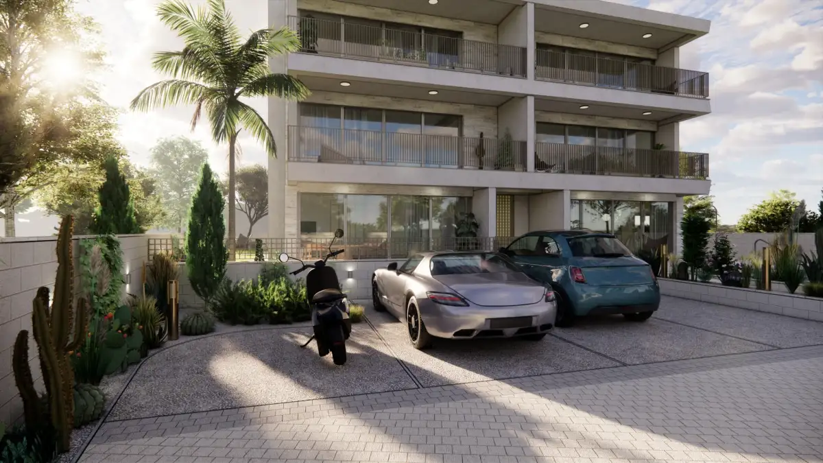 Součástí apartmánu je vyhrazené parkovací stání. Rezidenti budou mít navíc přístup ke společnému bazénu, zasazenému do pečlivě upravené středomořské zahrady.