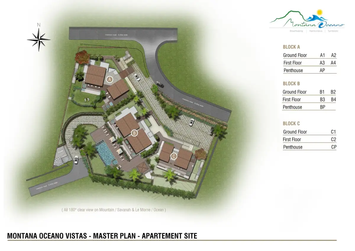 Nabízíme k prodeji luxusní penthouse 4+kk v nově vznikajícím luxusním projektu Montana Oceano na jihozápadě ostrova Mauricius. Rezidence leží uprostřed svěží tropické přírody ve výšce 123 metrů nad mořem a nabízí úchvatný 180stupňový výhled na hory, savanu a Indický oceán.
