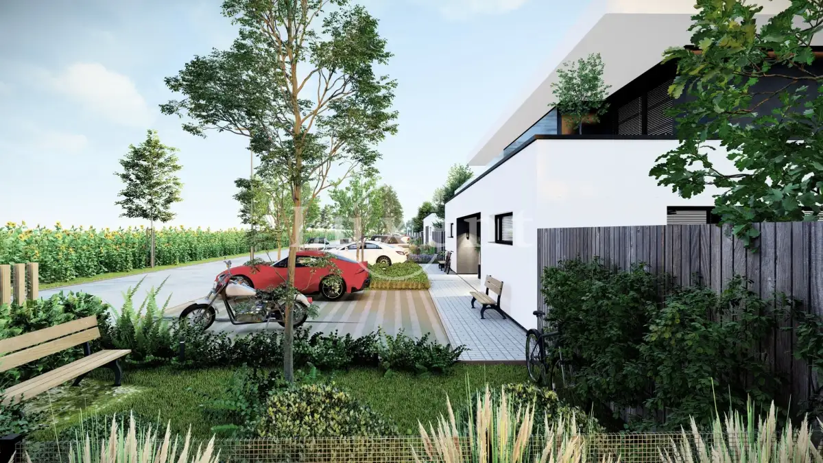 Dům je bude vystavěn z pórobetonových tvárnic YTONG Statik PD 250 mm, bude zateplen, okna plastová s izolačním trojsklem a přípravou pro žaluzie. Zahrada bude oplocena a v ní bude akumulační jímka pro dešťovou vodu. Dům bude zabezpečen systémem Jablotron. Vytápění elektrické, podlahové. Zdroj elektrické energie jsou vlastní fotovoltaické panely na střeše domu (pro 4 byty) Ohřev vody zásobníkovým ohřívačem OKCE 200. V bytě je instalována rovněž podstropní rekuperační jednotka. Pro každý dům bude připravena přípojka odpadních vod, po zkapacitnění městské čističky dojde k přepojení. V tuto chvíli budou odpadní vody odváděny do dvou jímek odpadních vod o celkovém objemu 20 m3.