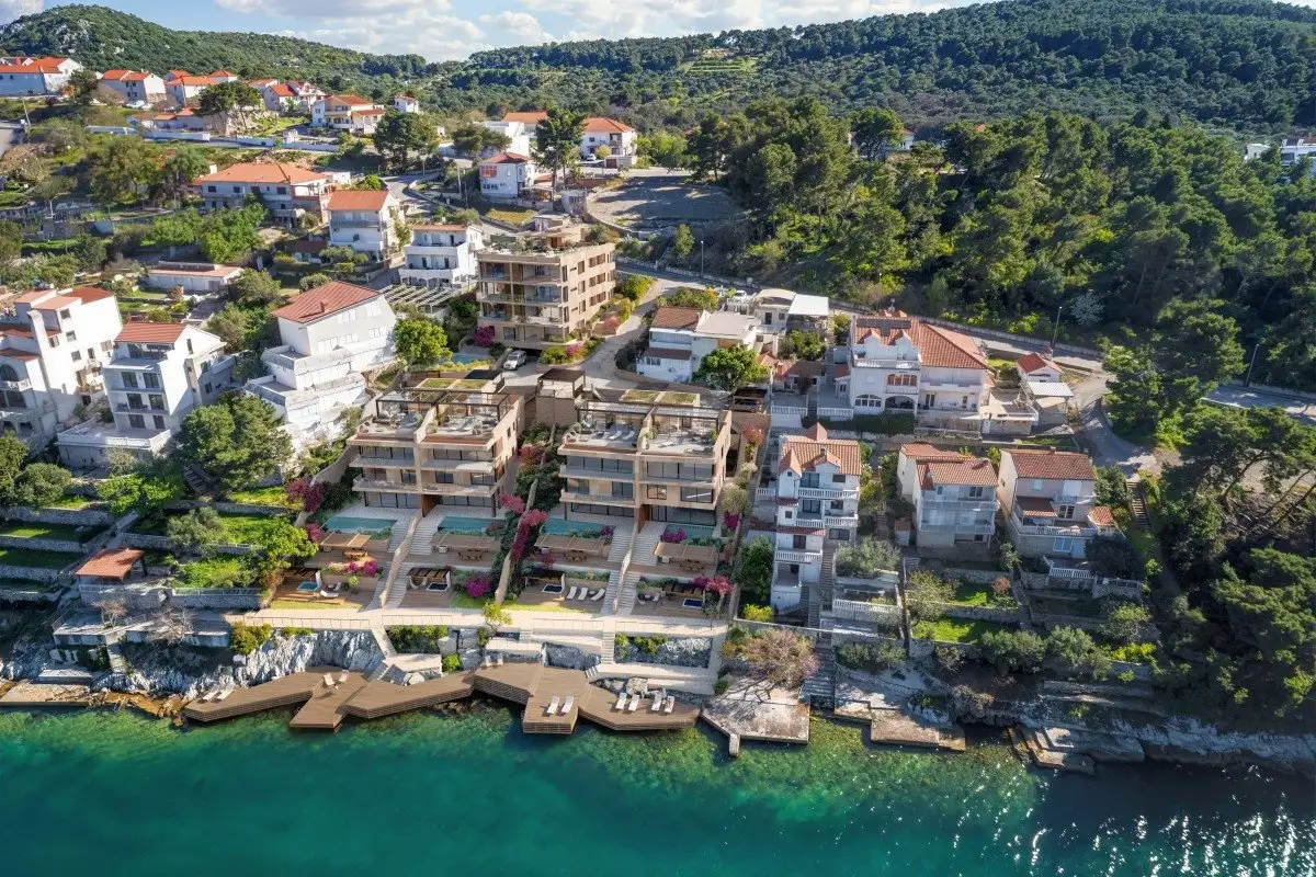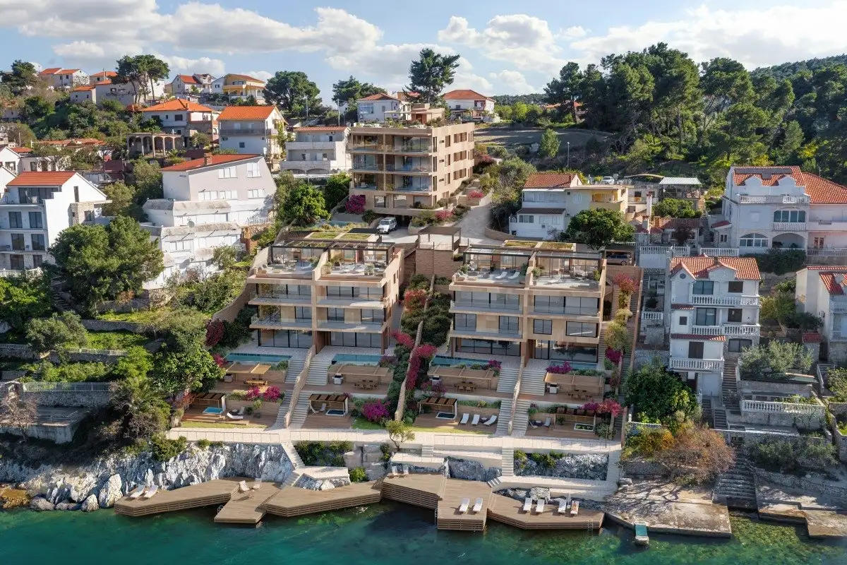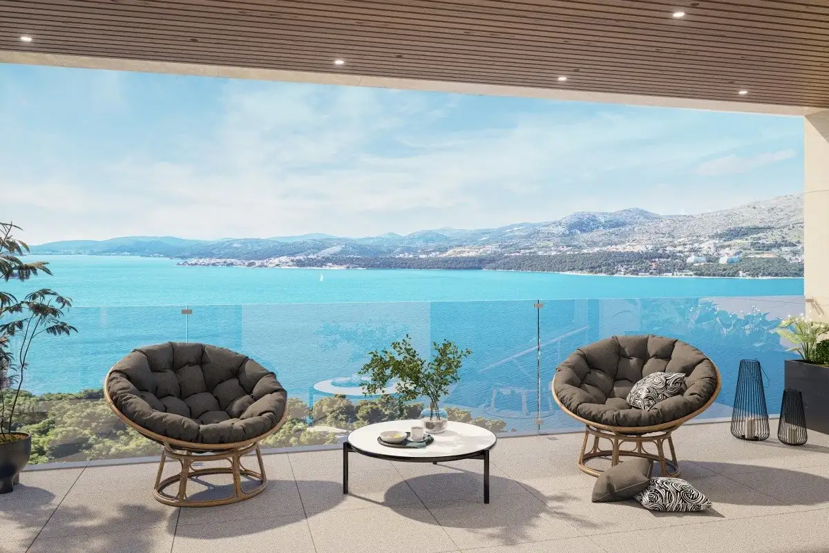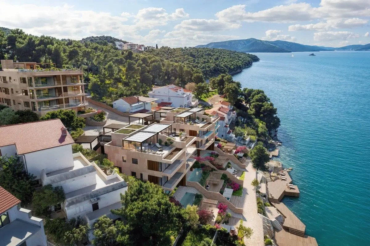 Jednou z největších výhod je poloha – moře je jen pár kroků, Trogir a Split jsou snadno dostupné a letiště je vzdálené pouhých 13 km. Kombinace čistého moře, středomořské krajiny a kompletní občanské vybavenosti činí z tohoto apartmánu ideální volbu pro celoroční bydlení i luxusní dovolenou.