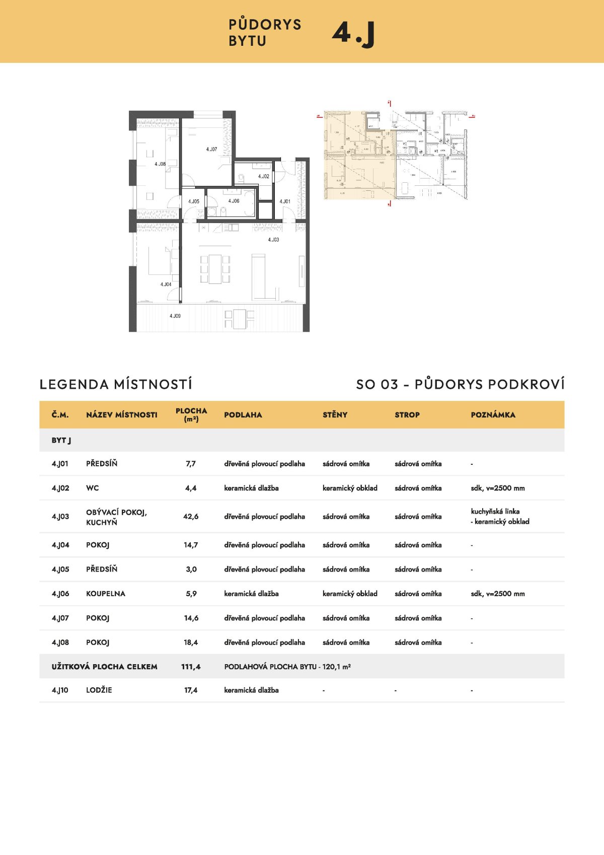 | NB-A4J | 4+kk | 3. patro | 111 m2 | 120 m2 | Ne / Ne / 17 m2 | Ne | 15 790 000 Kč | Detail |