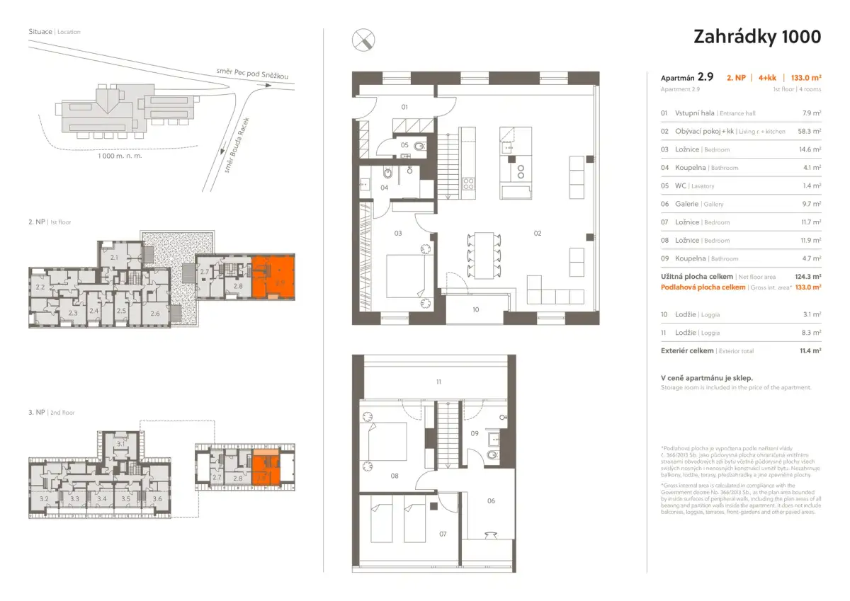 | Z2-9 | 4+kk | 1. patro | 124 m2 | 133 m2 | Ne / Ne / 11 m2 | Ne | Rezervováno | Detail |