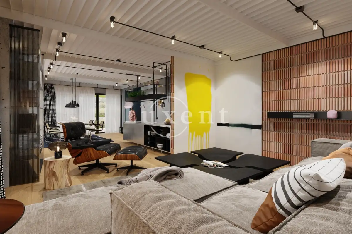 Nabízíme k prodeji designový byt 4+kk o velikosti 131,97 m2 s terasami 18,2 a 40,6 m2 v unikátním developerském projektu Garden Lofts v ulici Pechlátova, Praha 5.