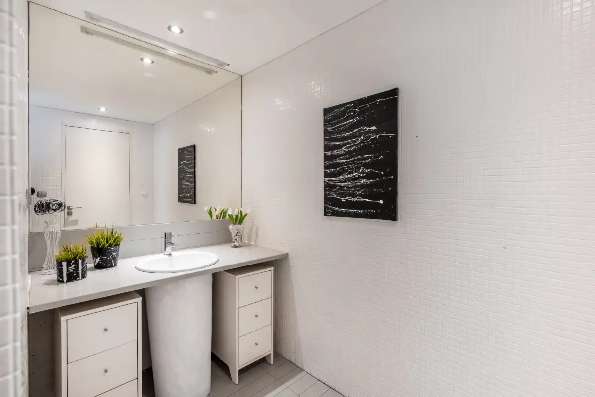 Po obou stranách obytné místnosti jsou vchody do soukromých ložnicových částí. Každá z nich má předsíň, dvě ložnice (pokoje o velikosti 15,6 m², 17,8 m², 17,95 m² a 15,64 m²) a koupelny (8 m²), druhá koupelna je rozdělena, část slouží jako technická místnost s pračkou a sušičkou (4,87 a 4,2 m²).