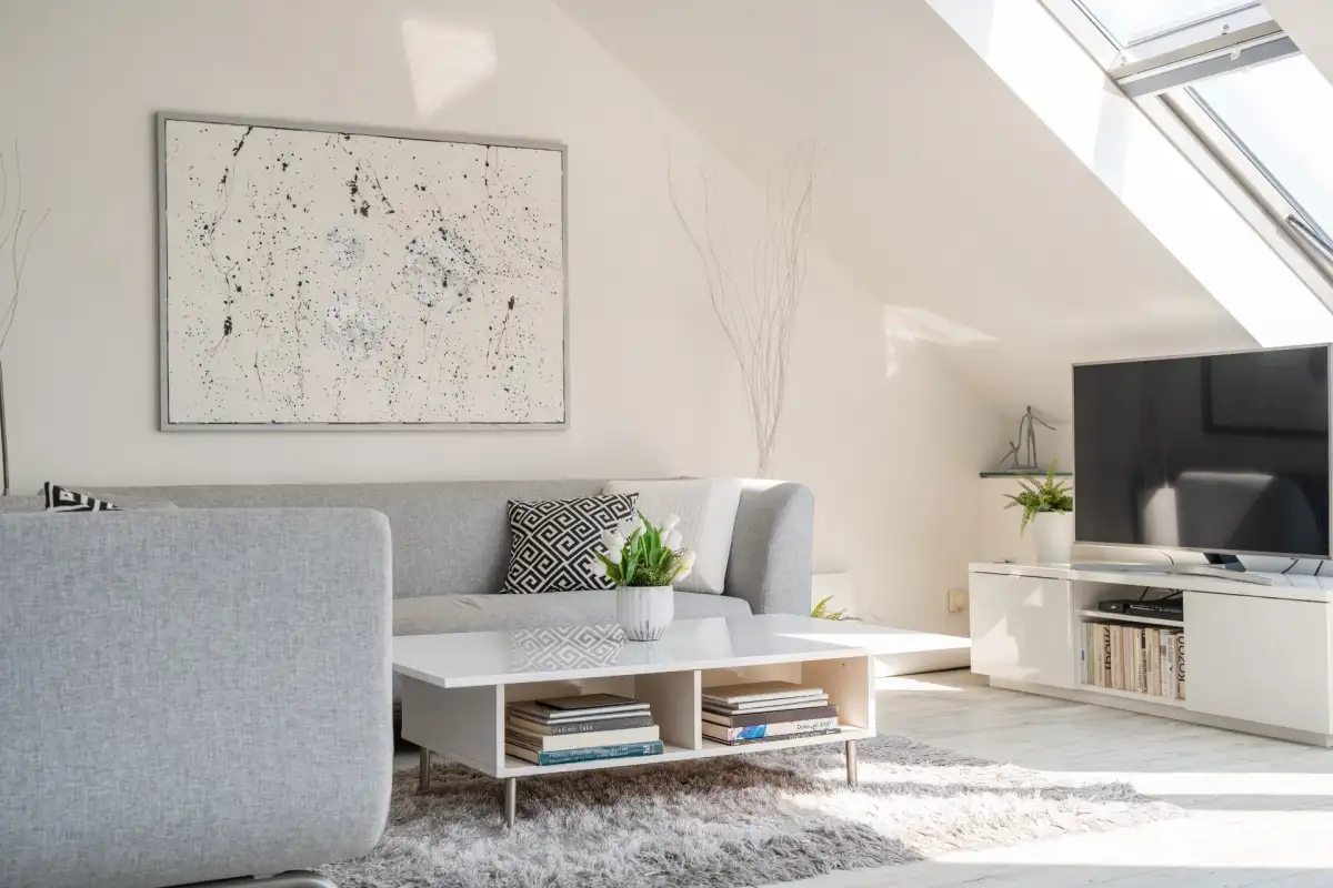 Kolaudace bytu proběhla v roce 2002. Dveře na terasy jsou hliníkové, velkoplošná panoramatická okna v ocelových rámech prosvětlují obývací pokoj s výškou stropu 7 metrů. Podlahy jsou vinylové. Topný systém je napojen na vlastní plynový kotel.