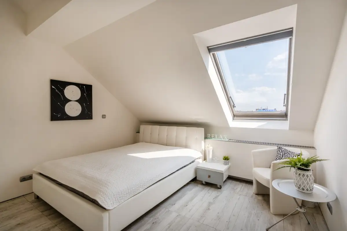 Byt lze dle potřeby rozdělit na dvě samostatné bytové jednotky (3+kk se dvěma terasami a 2+kk s jednou terasou).V domě je instalován kamerový systém k zajištění bezpečnosti majitelů. Výtah je v aktivním řešení.