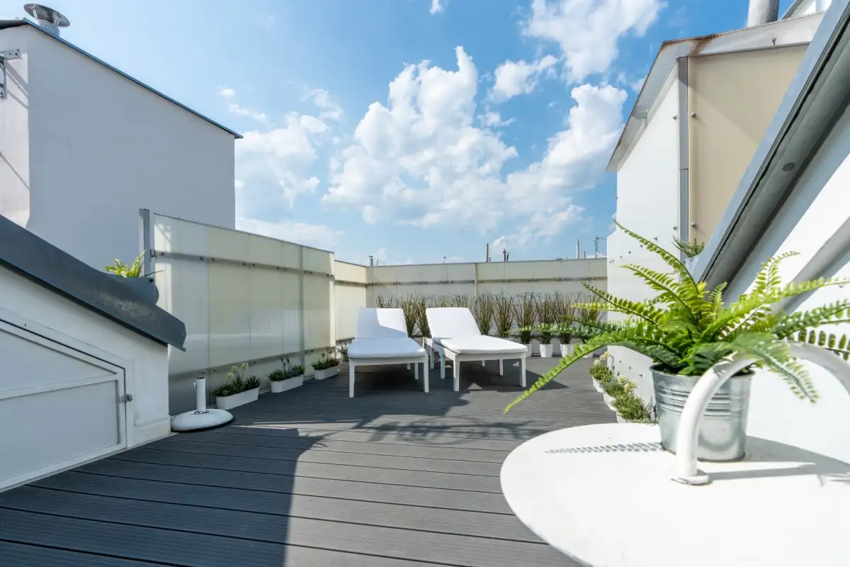 Celková plocha bytu včetně tří teras činí 219 m² (dvě terasy o výměře 14,85 m² a 13,3 m², horní terasa 18,85 m².
