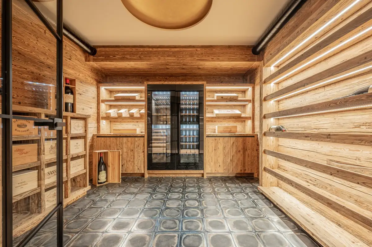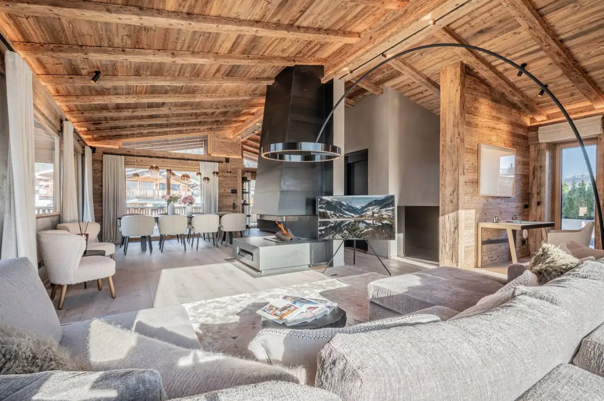 Interiér chaletu je vybaven vysoce kvalitními materiály, včetně přírodního kamene, starého dřeva, dubových palubek a špachtlovaných povrchů. Nábytek je vyráběn na míru renomovanou rakouskou firmou Aufschnaiter. Tento moderní a zároveň tradiční styl podtrhuje otevřený krb, krov a vazník ze starého dřeva a sofistikované detaily, jako ambientní osvětlení a integrovaný zvukový systém v každé z čtyř koupelen.