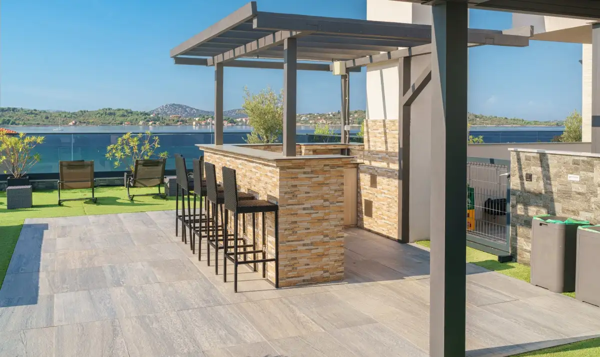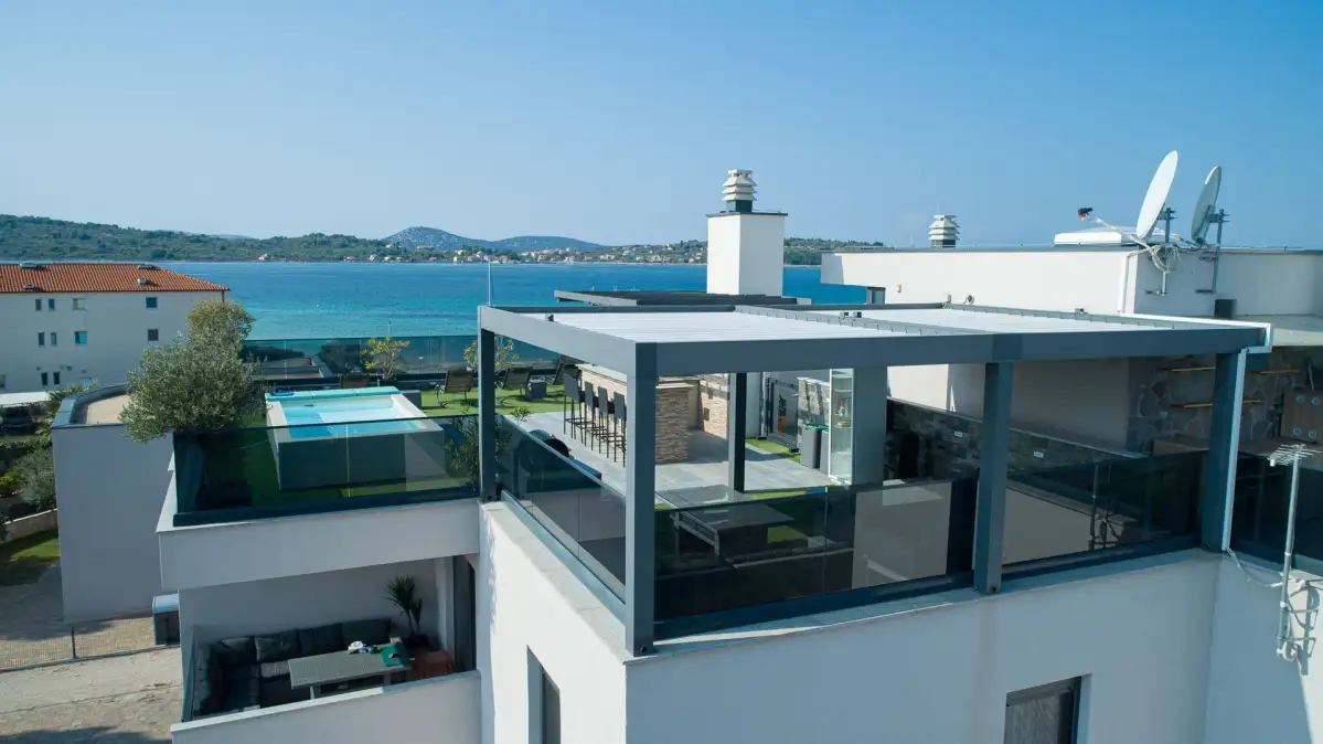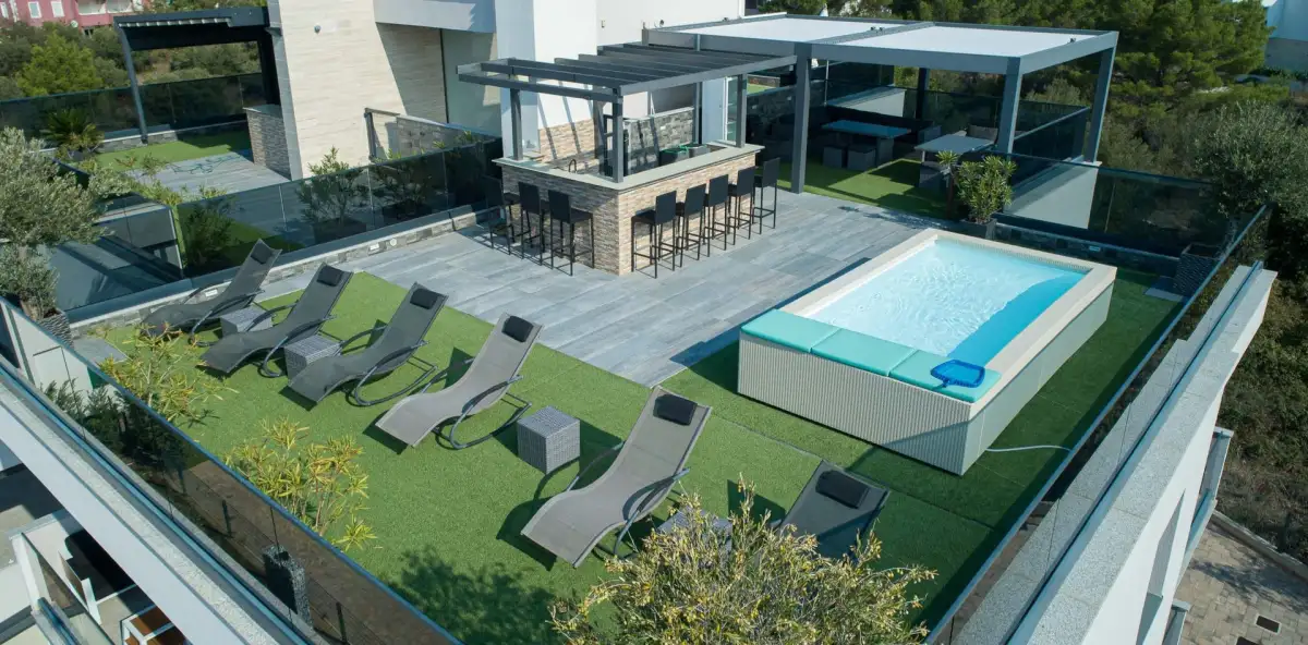 Hlavní předností je rozsáhlá střešní terasa o velikosti 115 m², vybavená relaxační zónou s bazénem o rozloze 8 m², barem a grilem – ideální prostor pro letní posezení s rodinou či přáteli.