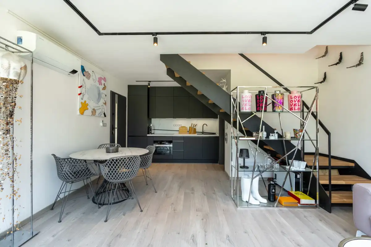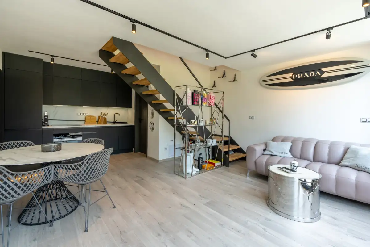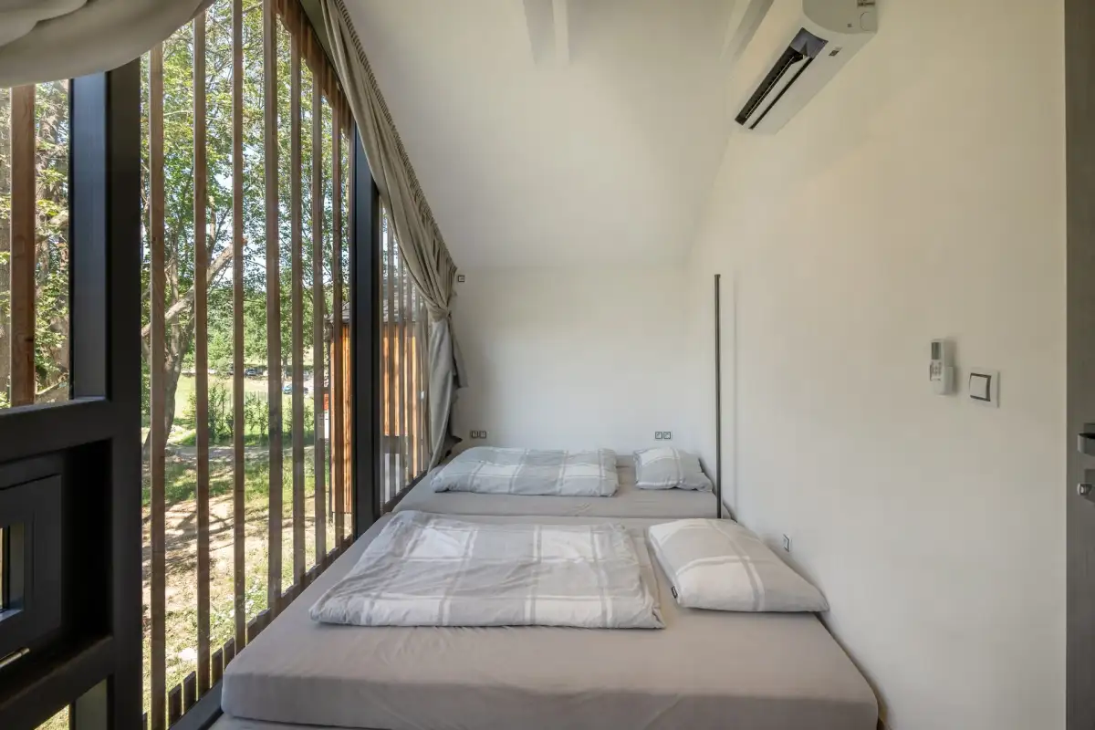 V přízemí se nachází prostorný kuchyňský kout propojený s obývacím pokojem o celkové rozloze 25 m². Součástí přízemí je také koupelna o rozloze 4 m². Druhé nadzemní podlaží disponuje dvěma podkrovními pokoji. První pokoj má rozlohu 13,5 m² a druhý 8,4 m², což poskytuje dostatek prostoru pro pohodlné bydlení.