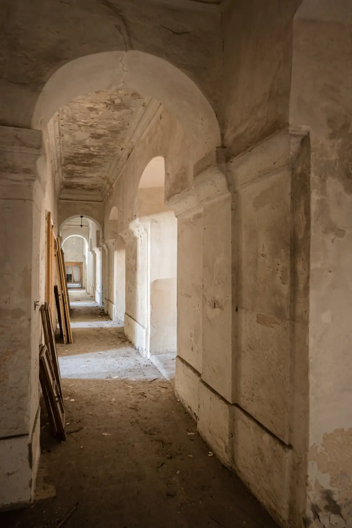 Hlavní vjezd ústí do zámeckého dvora. Po jeho obou stranách pod arkádou se vchází do protilehlých křídel. Jednotlivá patra spojují monumentální schodiště a na každém podlaží chodby ze strany nádvoří spojují obytné části. Ze společenského sálu s barokním krbem v levém křídle se po kamenném zahradním mostě vchází do terasovité zahrady. Zámek je podsklepen.