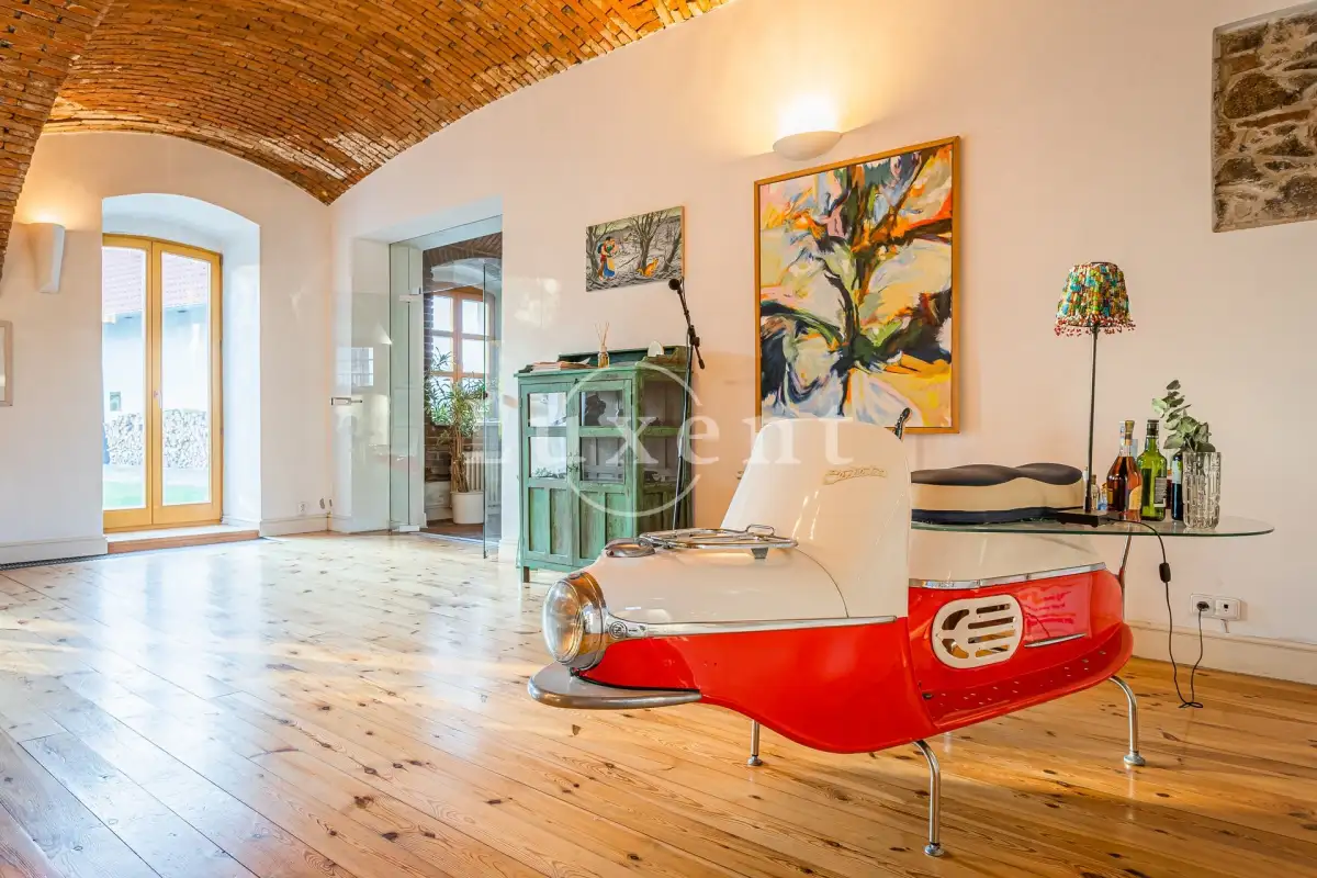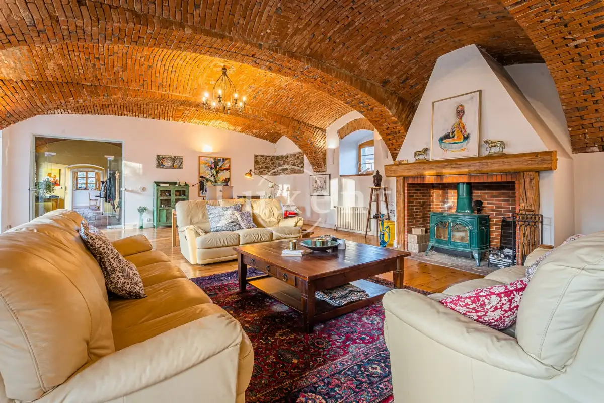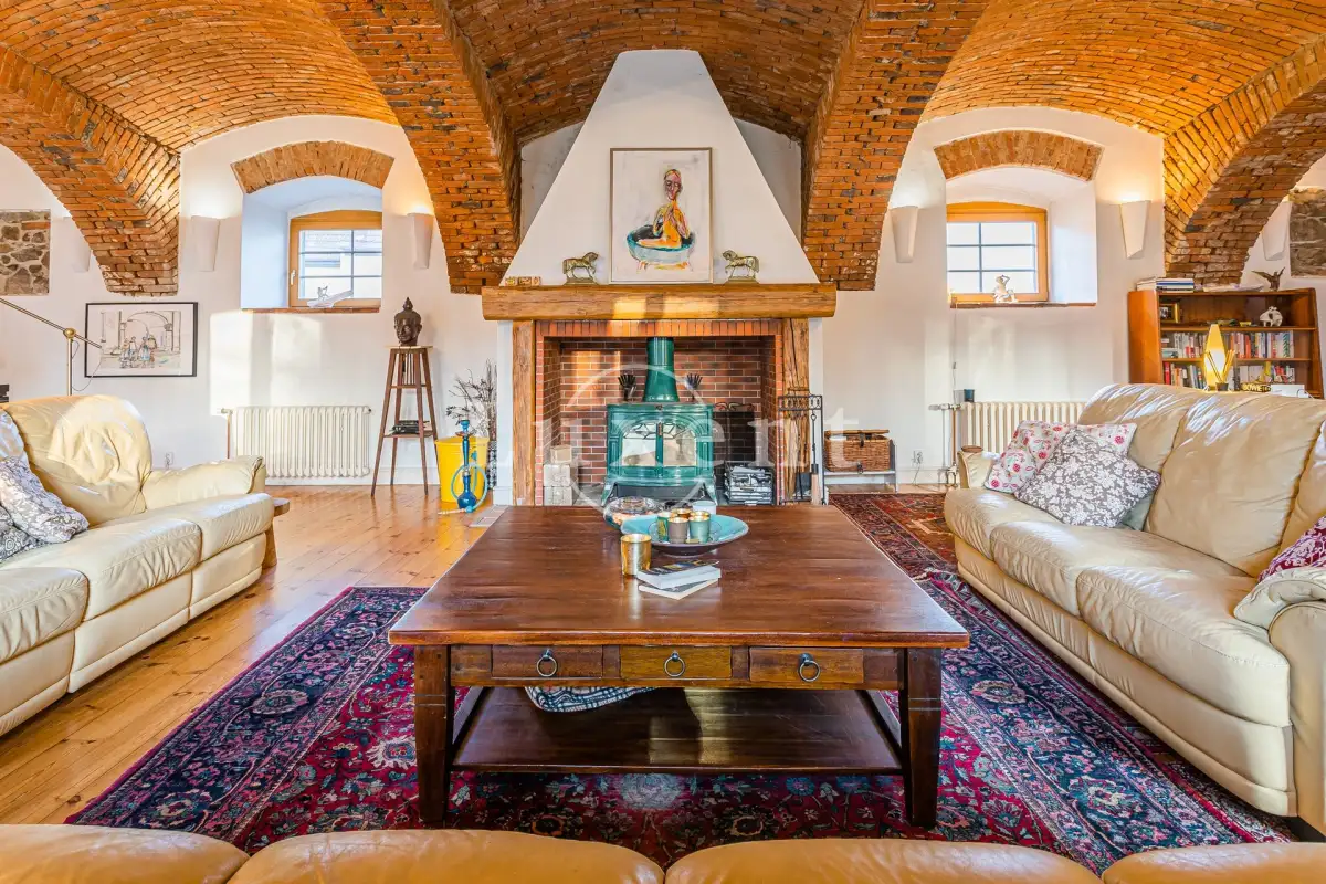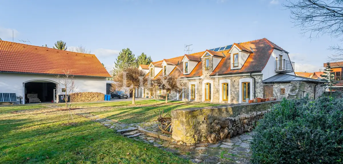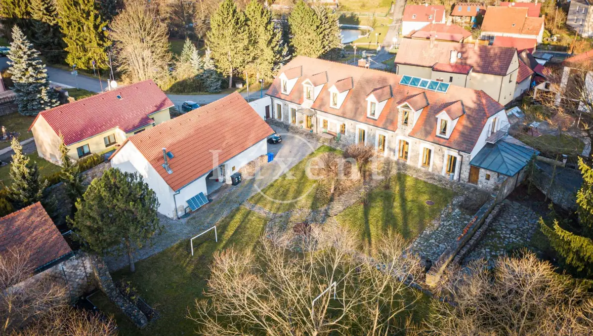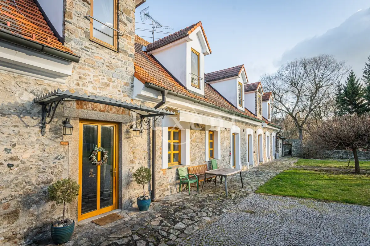 Nabízíme k prodeji stylové venkovské stavení z roku 1860, které bylo velmi citlivě zrekonstruováno v letech 1998-2002 českým architektonickým studiem de.fakto. Interiér o rozloze 411 m2 je velmi prostorný, prosvětlený a kombinace původní staré dlažby, klenutých cihlových stropů a odhalených trámů dodává domu ojedinělou venkovskou atmosféru.