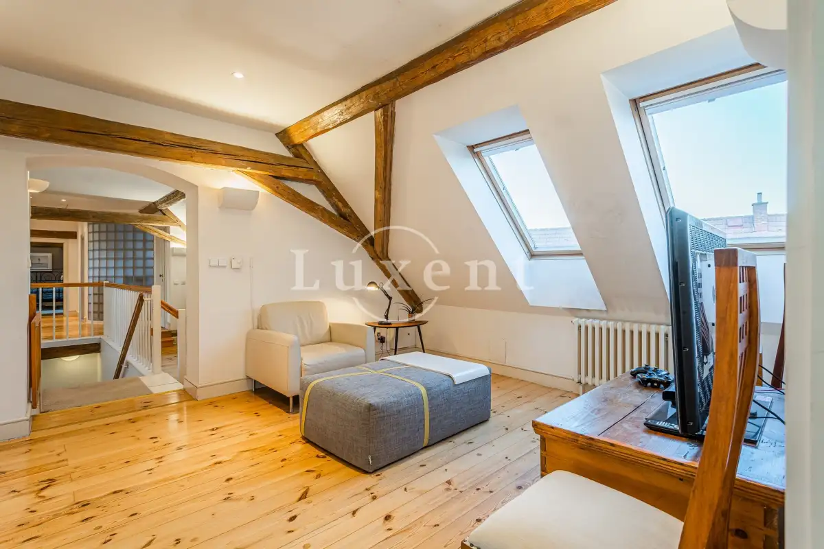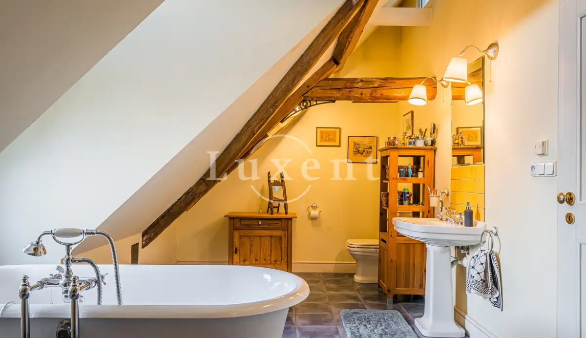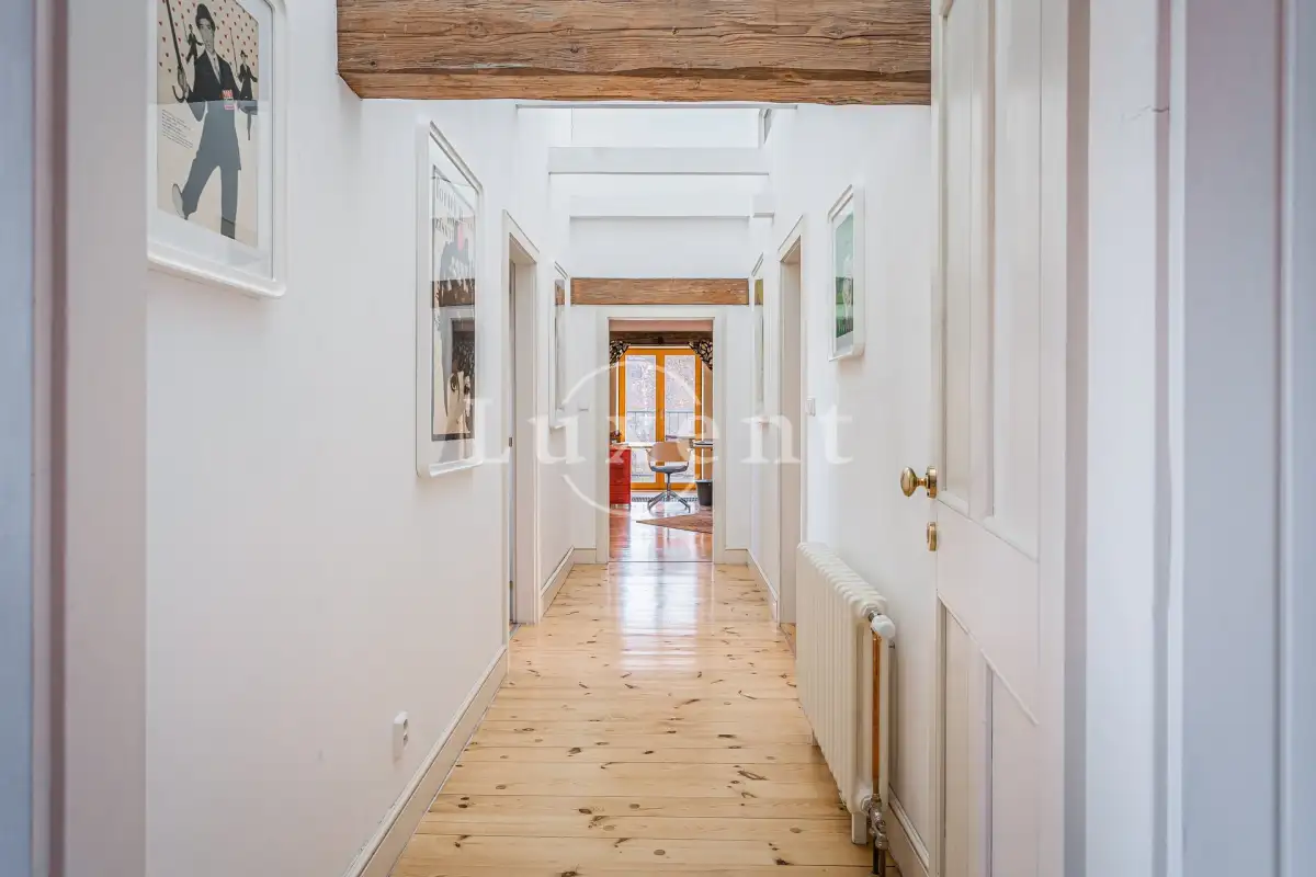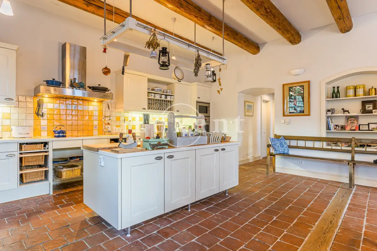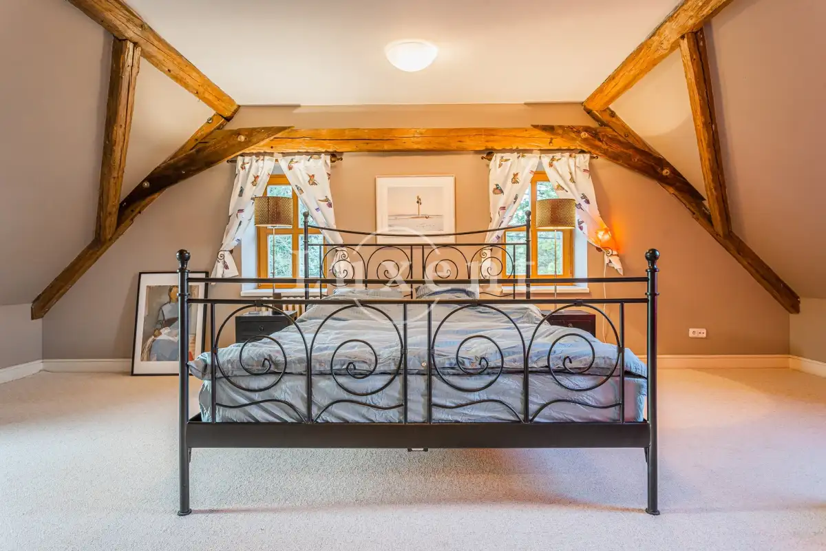 Nabízíme k prodeji stylové venkovské stavení z roku 1860, které bylo velmi citlivě zrekonstruováno v letech 1998-2002 českým architektonickým studiem de.fakto. Interiér o rozloze 411 m2 je velmi prostorný, prosvětlený a kombinace původní staré dlažby, klenutých cihlových stropů a odhalených trámů dodává domu ojedinělou venkovskou atmosféru.