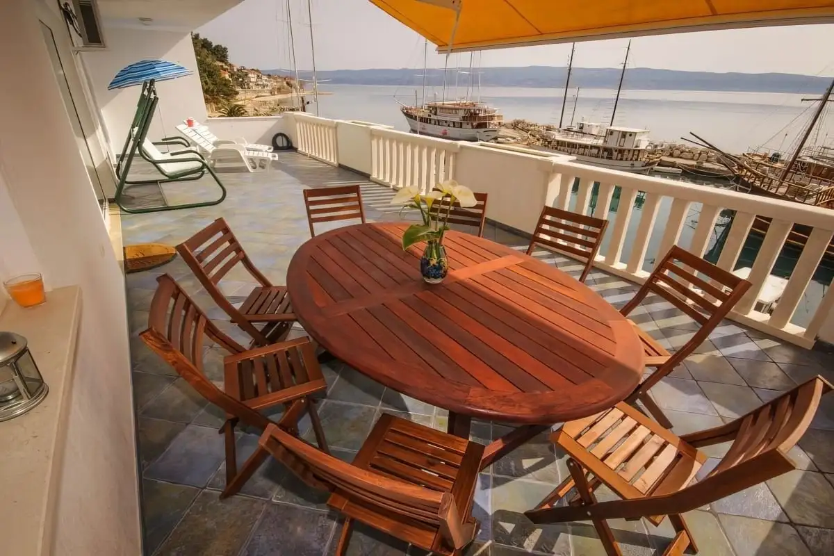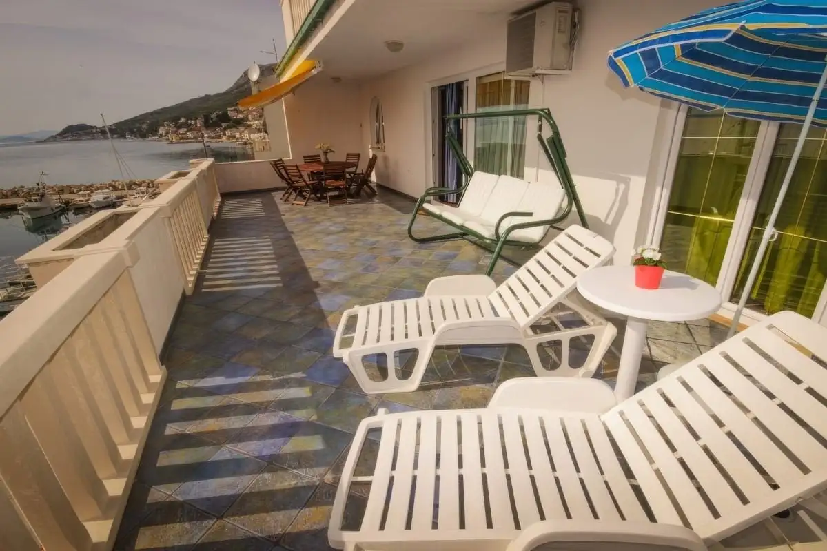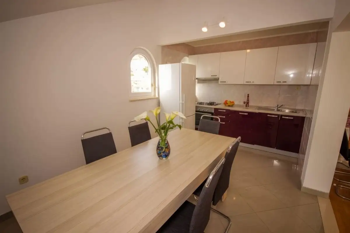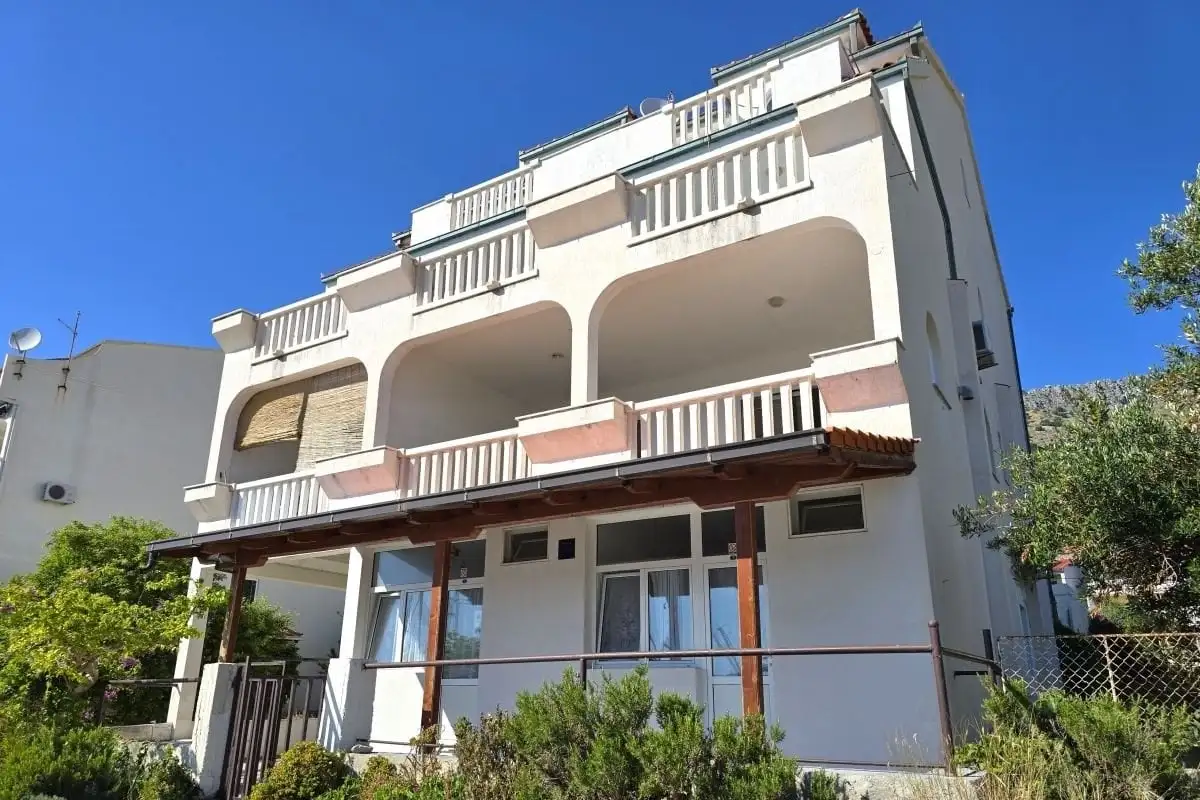 V přízemí domu se nacházejí tři samostatné jednopokojové apartmány. Tyto jednotky jsou vhodné jak pro krátkodobý turistický, tak i pro dlouhodobý pronájem. V prvním patře je situován prostorný apartmán, který disponuje velkou lodžií a nabízí krásný výhled na moře. Ve druhém patře se nachází další třípokojový apartmán s přístupem na lodžii a otevřenou terasu, která poskytuje příjemný venkovní prostor k relaxaci. V podkroví je umístěn prostorný třípokojový byt s balkonem, ideální například pro rodinu.
