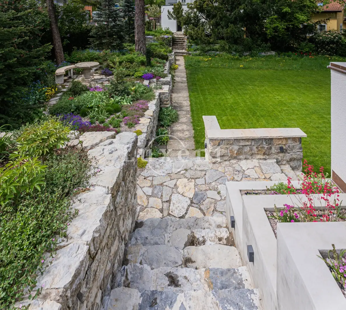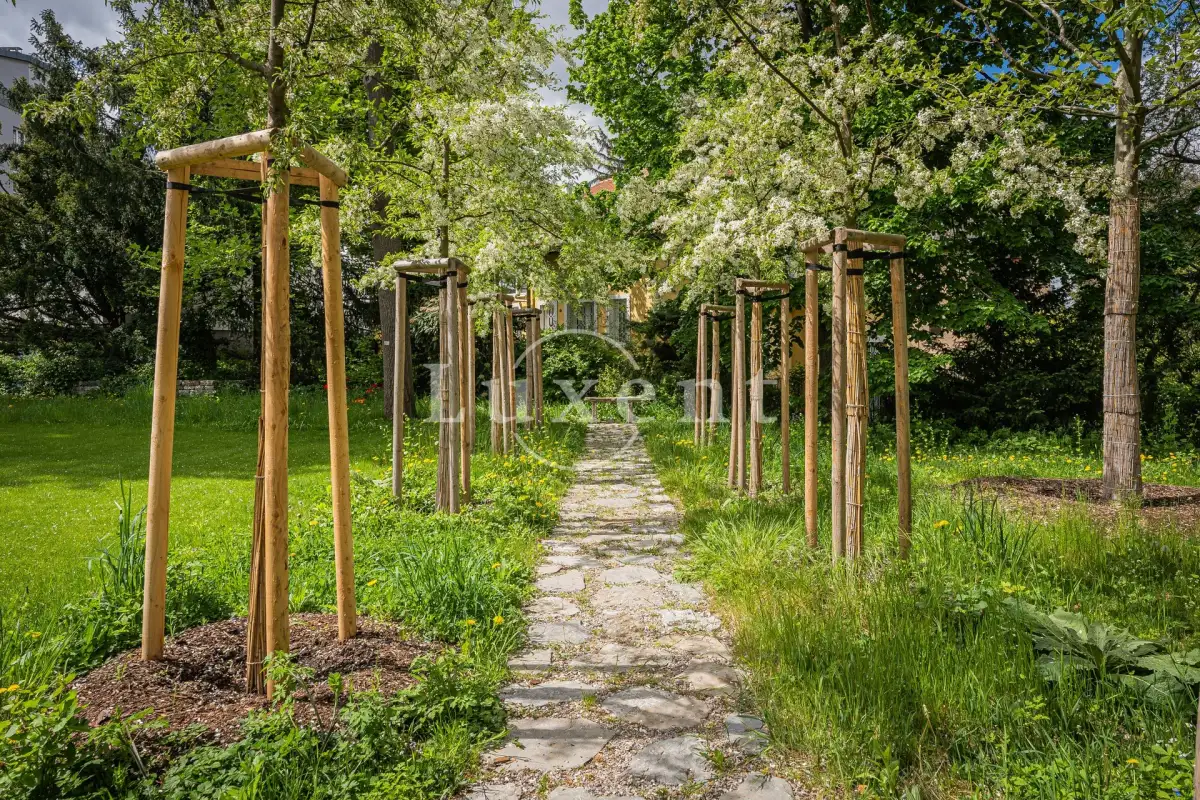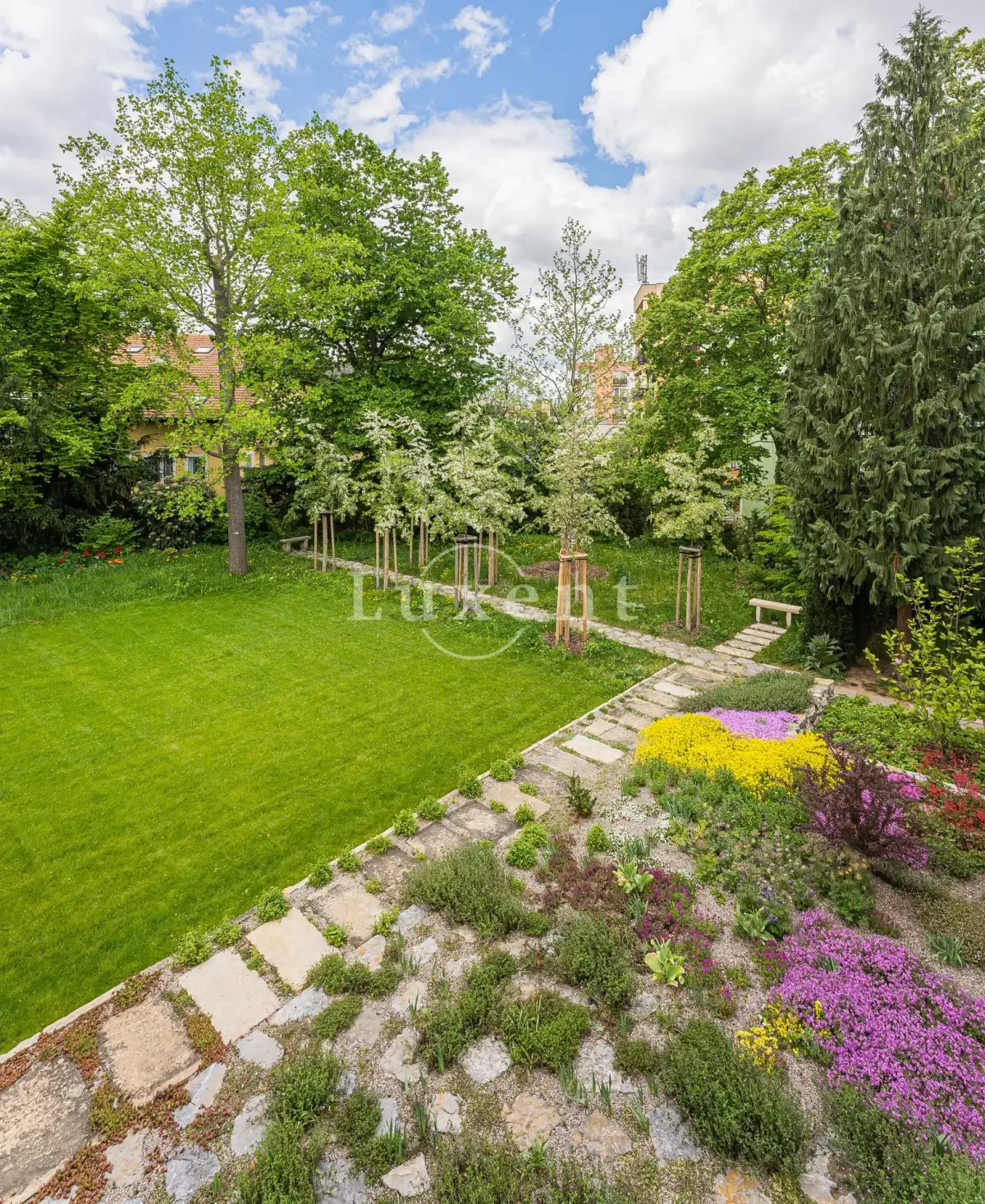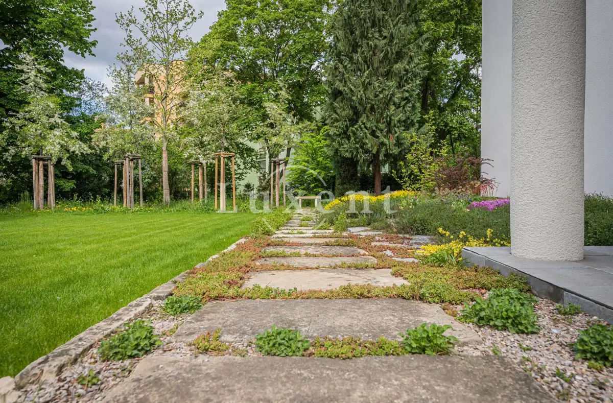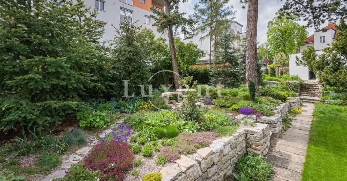 Vzrostlá zahrada o celkové ploše 1.066 m2 navržená významným českým architektem je zrekonstruována podle jeho původních plánů a vizí.