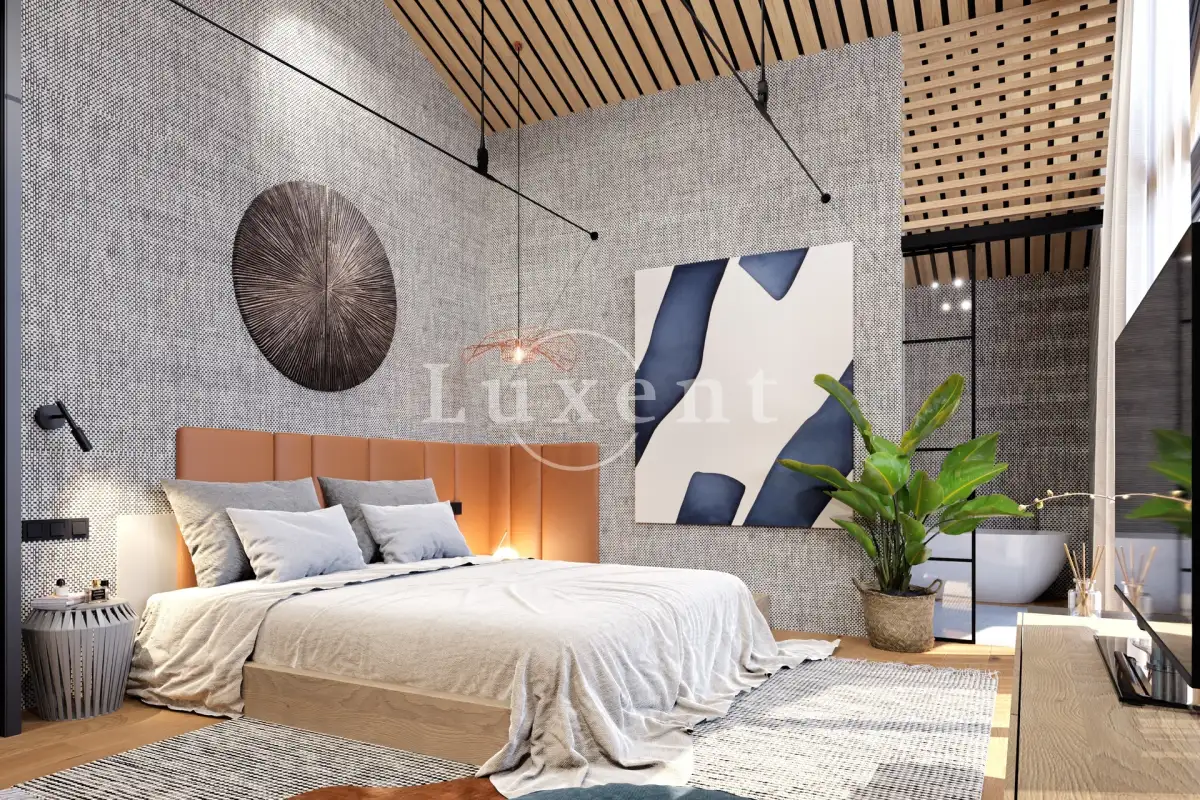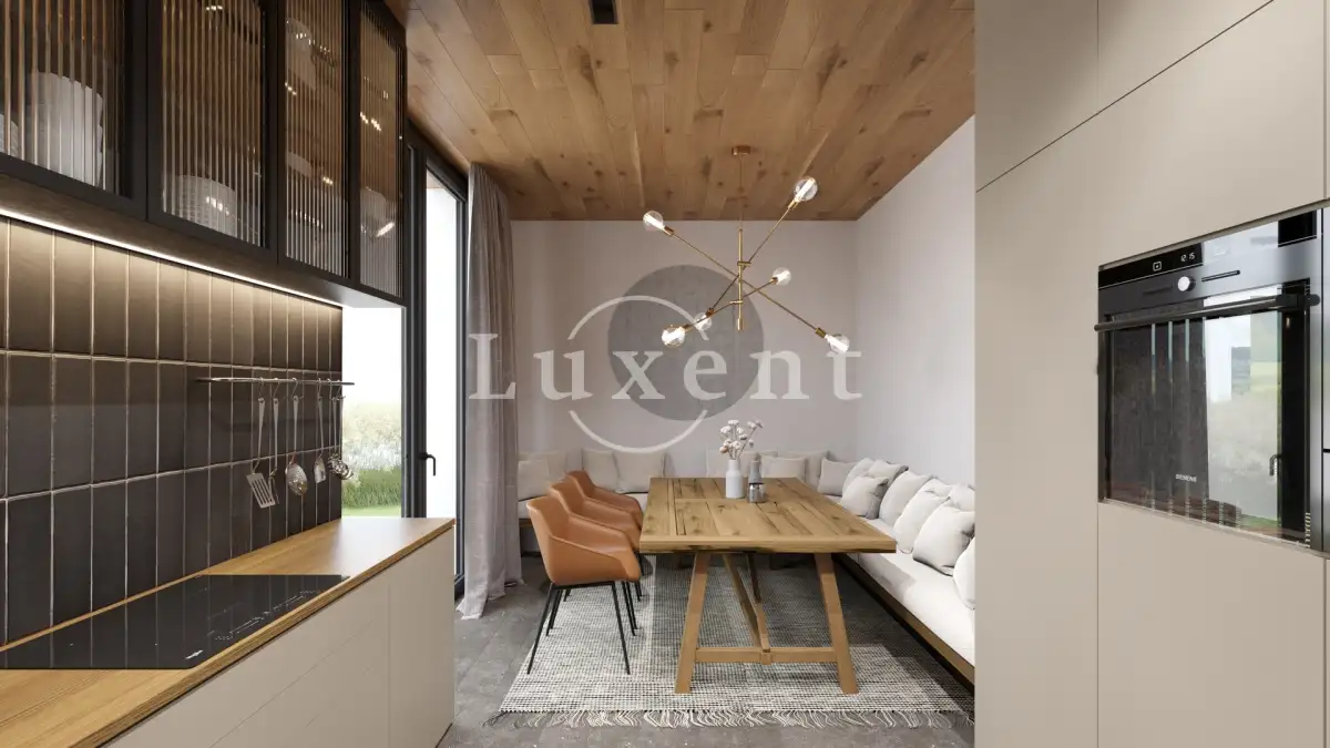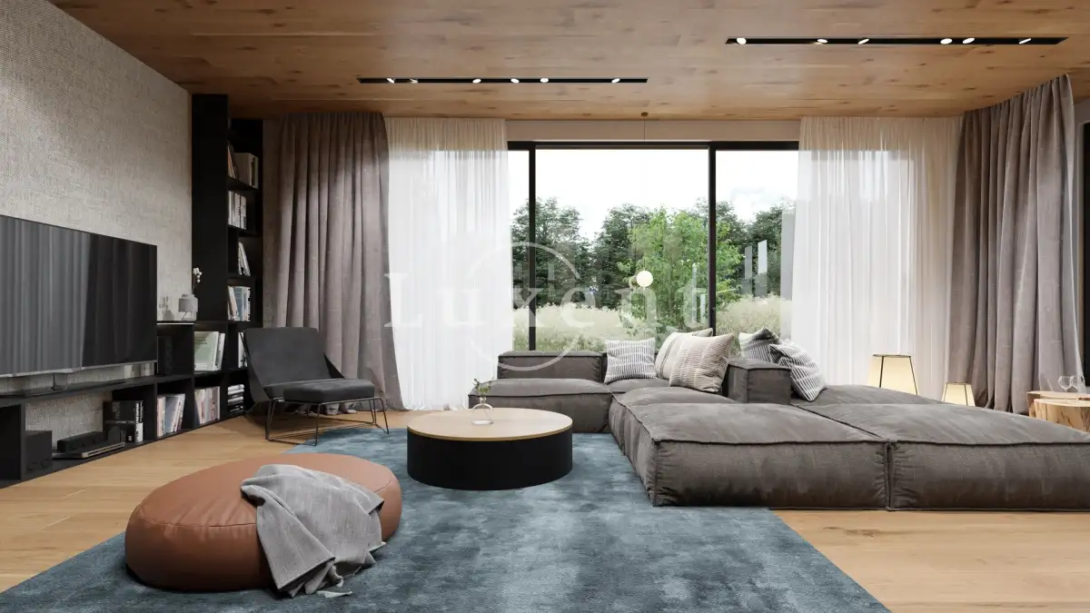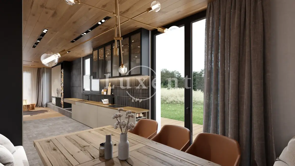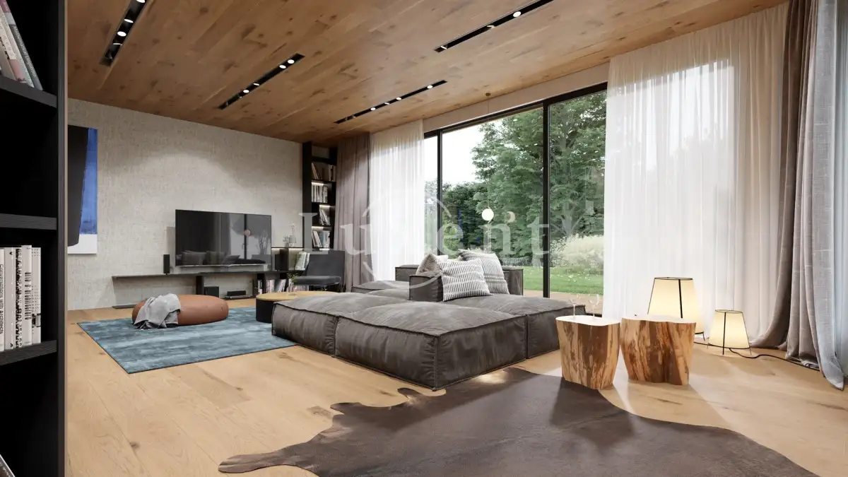 Dům je postaven z kvalitních materiálů. Plášť tvoří cihlové bloky POROTHERM (44 Profi), příčky cihlové Porotherm Wienerberger. Střecha Ruukki Classic – špičková ocelová střecha s nevšedním vzhledem, jejíž profil připomíná tradiční falcované krytiny. Okna na čele domu v obou patrech jsou hliníková (HS portál), ostatní okna trojskla, kvalitní plastová v antracitu v tónu střechy se zabudovanou schránkou a přípravou na okenní žaluzie či rolety. Interiérové dveře od firmy Prüm, vstupní dveře hliníkové prosklené, antracit, trojsklo. Na fasádě v 1.NP je strukturovaná omítka a kámen. Vytápění a chlazení domu tepelným čerpadlem Vaillant (země – voda) s integrovaným zásobníkem teplé užitkové vody. Podlahové topení a chlazení Rehau. V domě je příprava na FVE. Energetická třída domu je B – velmi úsporná. Na zahradě je vybudována retenčení nádrž na dešťovou vodu. Luxusní zařízení koupelen je od firem Villeroy&Boch, Steinberg, Light. V obytných místnostech je položena dřevěná třívrstvá podlaha Dub rustikální Authentik, přírodní, kartáčovaný, úprava olej, od firmy Meister, a velkoformátová rect. dlažba je položena na chodbách a v koupelnách. Dům je řízen chytrým systémem od firmy LOXONE. Je zde příprava na domovní el. zabezpečovací systém a dobíjení elektromobilů. Je zde domovní vrátný s kamerou. Vjezdová brána je na el. Pohon s dálkový ovládáním.