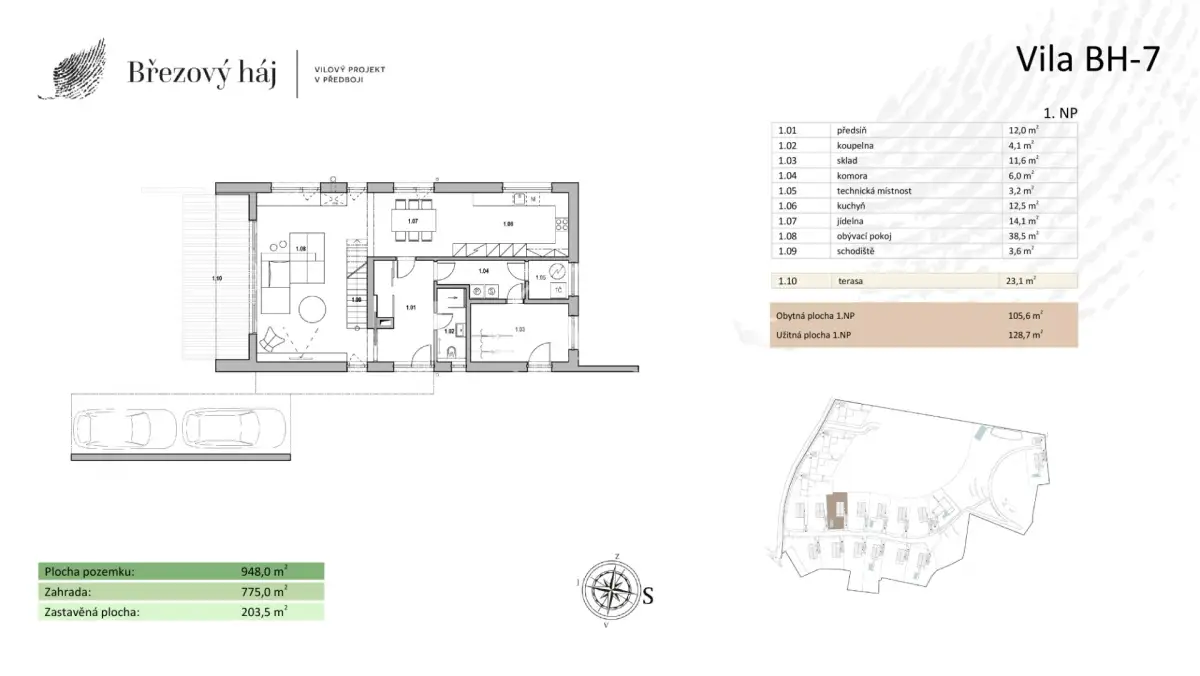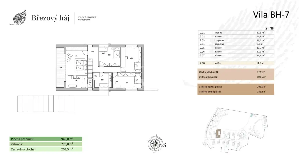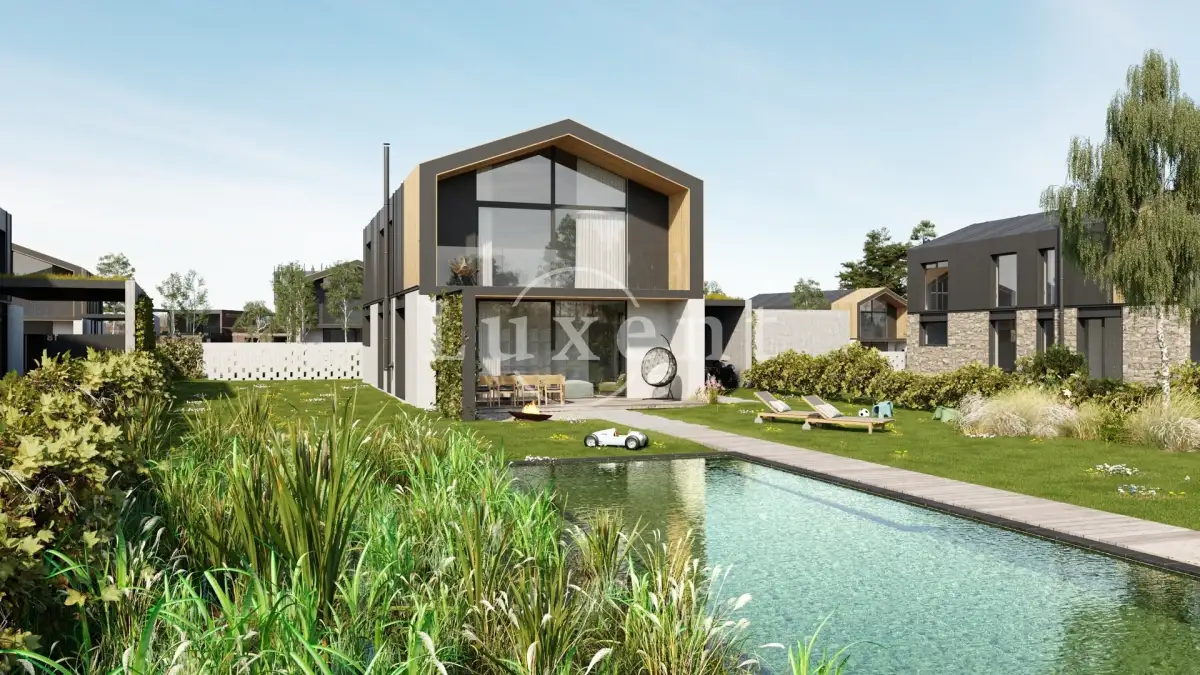 Nabízíme exkluzivně prodej rodinného domu se zahradou v centru oblíbené obce s golfovým hřištěm – Předboj, Praha-východ. Lokalita je situována do krásné středočeské zvlněné krajiny s listnatými lesy a rybníky (přímo v obci hned dva). Dům má celkovou užitnou plochu 238,2 m2, z toho plocha teras činí 23,1 m2. a lodžie 11,6 m2. K domu náleží carport pro dva vozy a venkovní pro další dva. Pozemek je o rozloze 986 m2, z toho zastavěná plocha (včetně garáže a zpevněných ploch) činí 188,8 m2, zahrada 797,2 m2. Vila je součástí nově vznikajícího moderního vilového resortu Březový háj. Jedná se o projekt devatenácti moderních vil, jehož záměrem je nabídnout velmi kvalitní a krásné místo ke spokojenému životu, blízko Praze i přírodě. Dostupnost do Prahy je vynikající, autem 10 min do Letňan, nebo autobusovým spojením 28 min na metro Ládví.