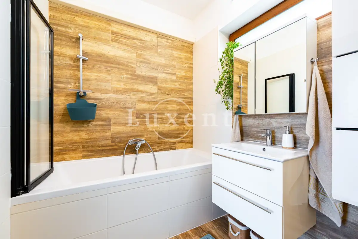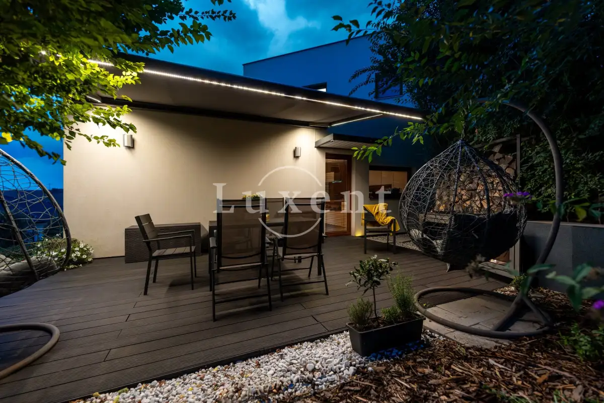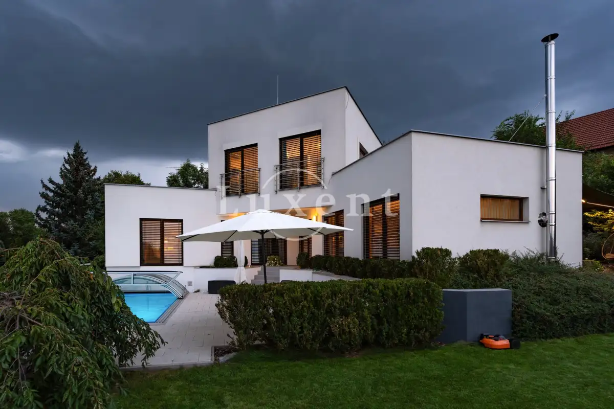 Nabízíme exkluzivně k prodeji rodinnou vilu 5+kk, se dvěma terasami, které díky víceúrovňovému řešení nabízí překrásné výhledy, ale i maximální soukromí. Nízkoenergetická třípodlažní vila s moderními technologiemi, tepelné čerpadlo země - vzduch, fotovoltaiku s bateriovým úložištěm, klimatizaci, podlahové vytápění, závlahu celé zahrady a předokenní hliníkové žaluzie. Celková bytová plocha činí 178 m2 a pozemek je o velikosti 829 m2.