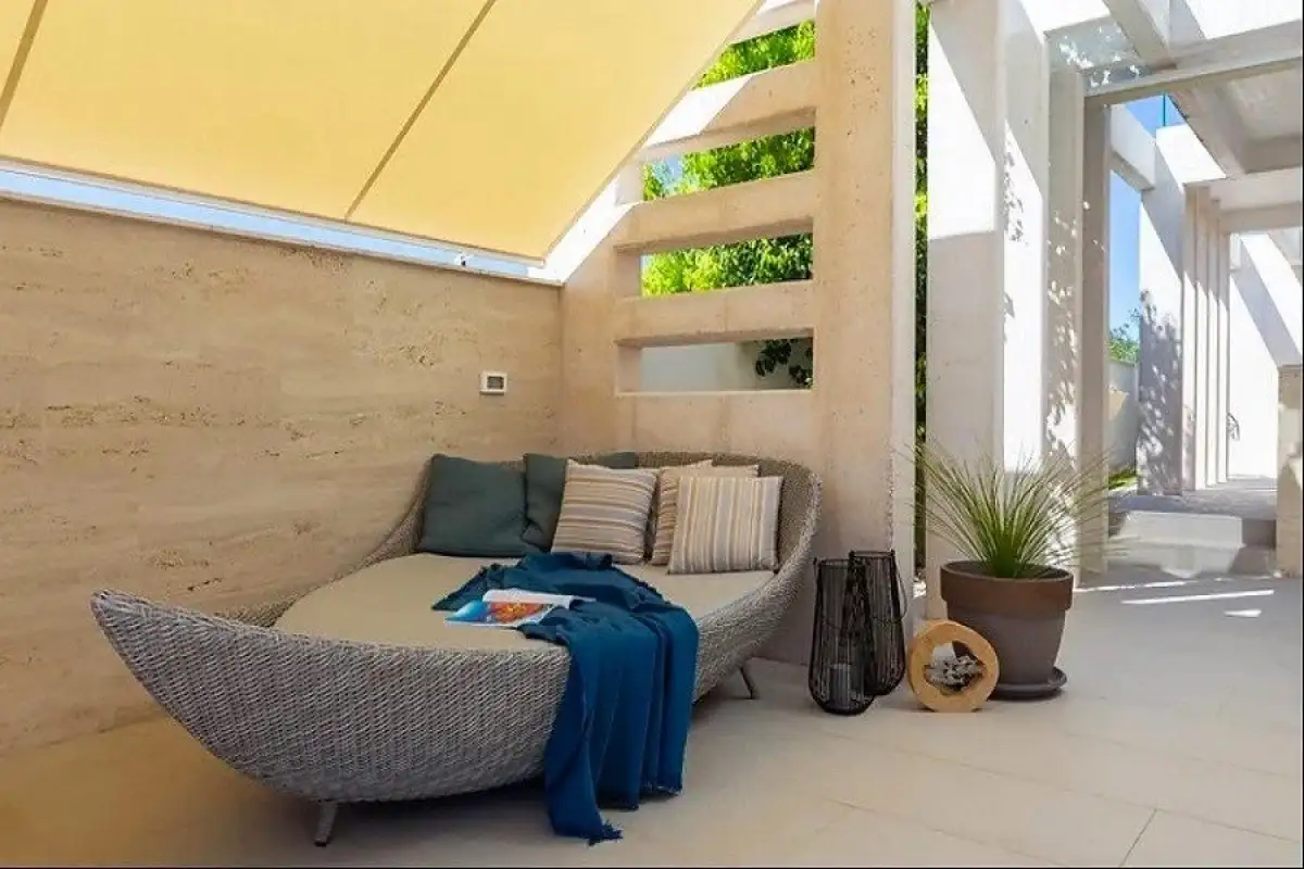 Vila je vybavena na nejvyšší úrovni: vlastní nábytek na míru, podlahové vytápění, tepelné čerpadlo pro vytápění a chlazení, solární panely pro ohřev vody, krb na dřevo, pět klimatizačních jednotek, porcelánové dlaždice na okrajích zahrady a rychlonabíječka pro elektromobily. Dům disponuje také zabezpečovacím a videotelefonním systémem pro maximální bezpečnost a komfort.