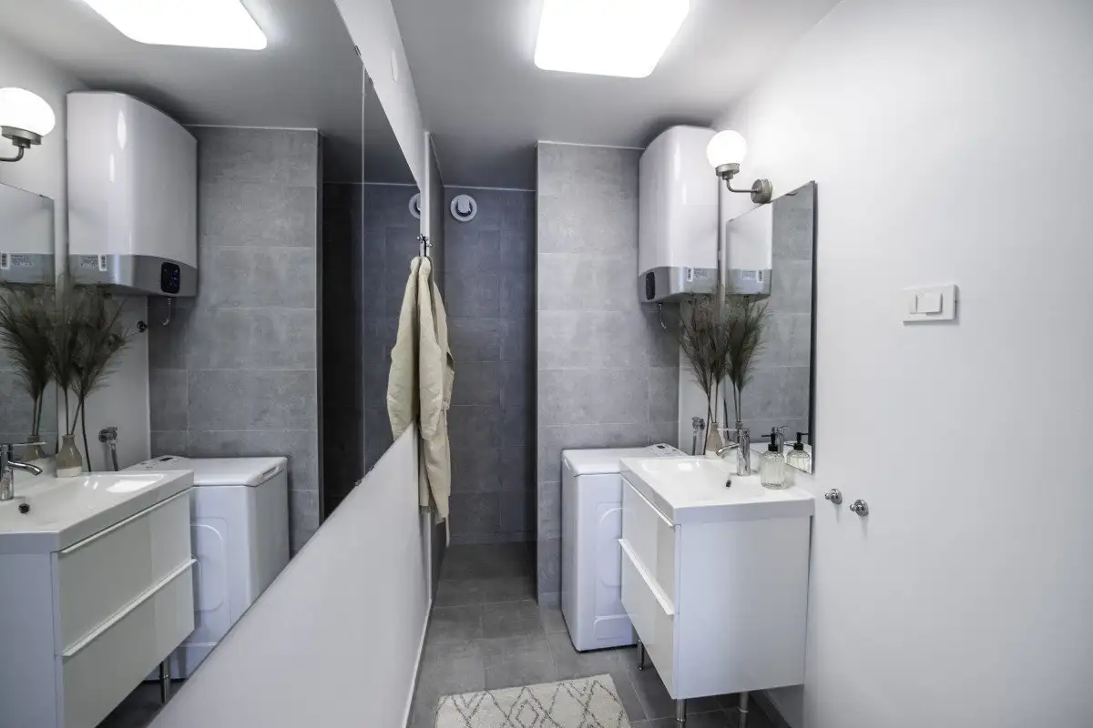 Interiér domu je laděn v moderním stylu s důrazem na čisté linie, funkčnost a pohodlí. Každé podlaží je prosvětlené denním světlem a z vyšších pater se otevírá krásný výhled na moře. Exteriér doplňuje parkovací zázemí s dostatkem prostoru pro několik vozidel. Dům představuje ideální příležitost pro komfortní rodinné bydlení, výnosnou turistickou investici nebo kombinaci soukromého a podnikatelského využití.