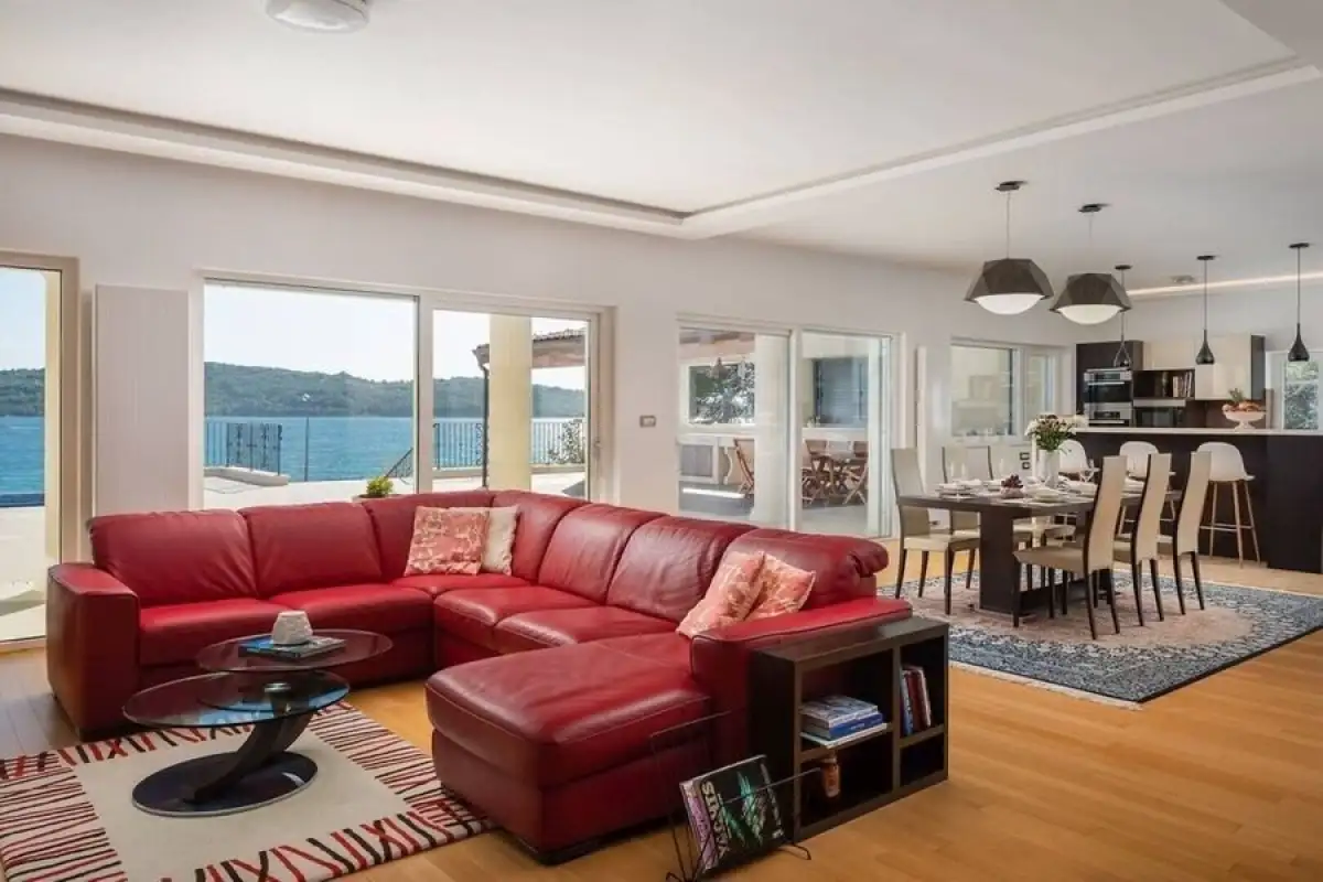 Tato reprezentativní nemovitost spojuje velkorysé prostory, absolutní soukromí a přímý kontakt s mořem, což z ní činí zcela unikátní nabídku na chorvatském pobřeží.