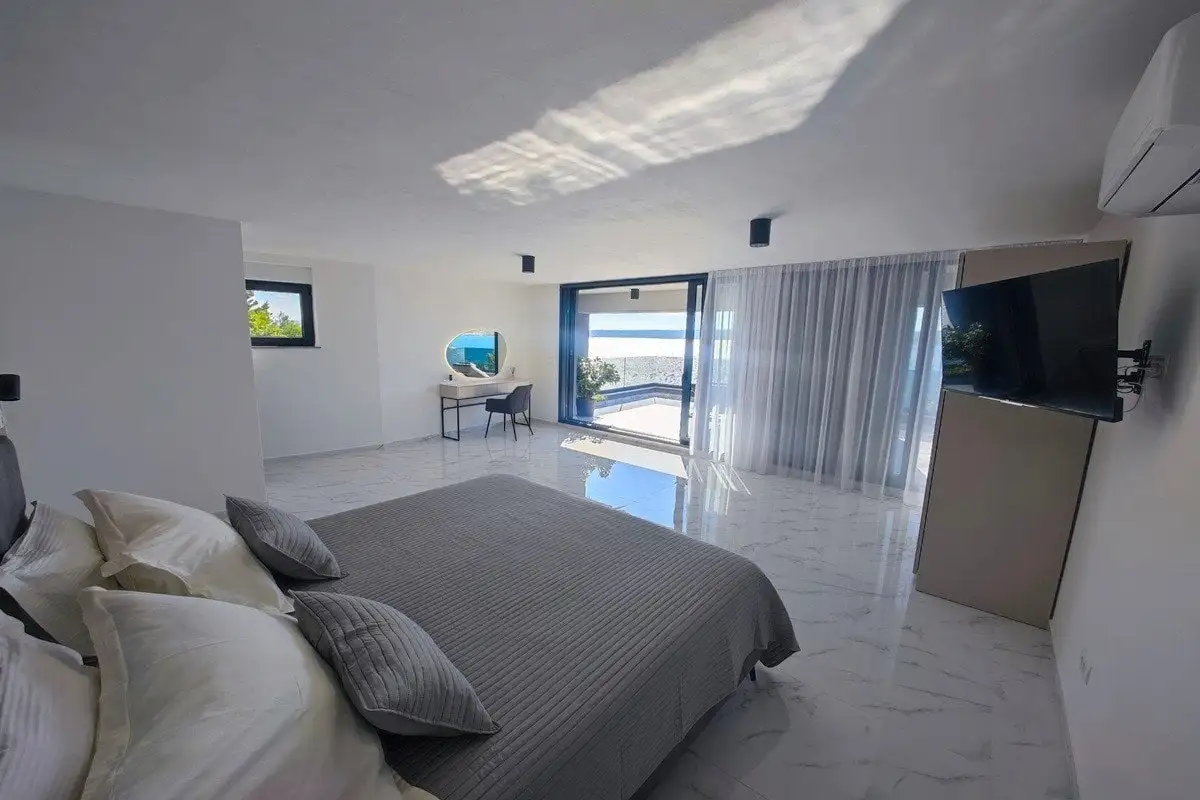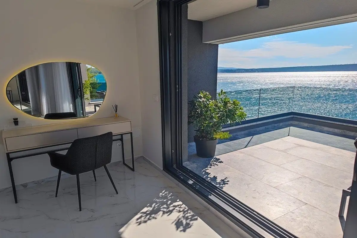 Nabízíme k prodeji výjimečnou moderní vilu situovanou přímo na břehu moře v Zadaru na pobřeží Jaderského moře v Chorvatsku. Tato jedinečná nemovitost představuje dokonalou kombinaci luxusu, pohodlí a soukromí – s přímým přístupem na pláž a každodenním zvukem mořských vln v pozadí. Okolí dotváří středomořské rostliny, oleandry a okrasné stromy, které vytvářejí aromatickou i vizuálně působivou oázu klidu. Součástí pozemku je soukromé parkování pro několik vozů, venkovní bazén o rozměrech 6×4 metry, prostorné místo na opalování, relaxační lounge zóna a travnatá terasa s panoramatickým výhledem na moře.