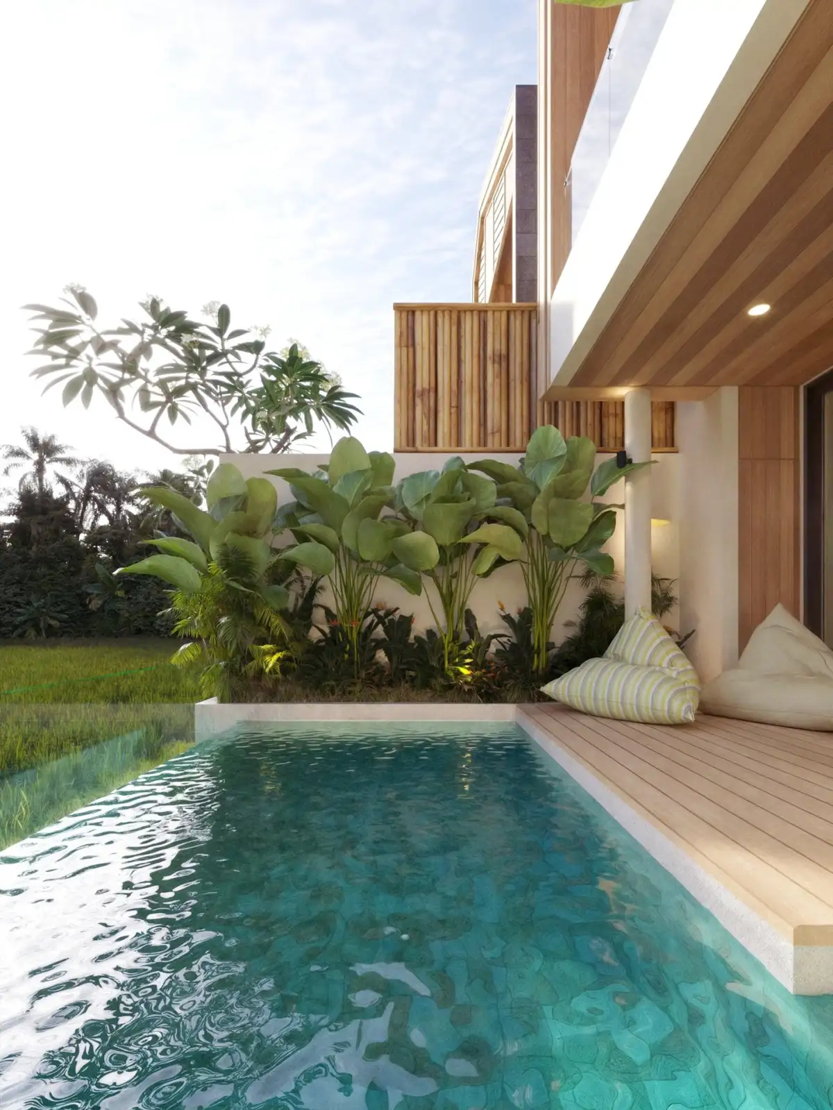Projekt je koncipován jako investiční nemovitost optimalizovaná pro pronájem, s důrazem na kvalitní materiály vhodné pro tropické klima (např. travertin, teakové dřevo či kámen Green Sukabumi) a dlouhodobou udržitelnost provozu. Každá vila má vlastní technické zázemí bez sdílené infrastruktury.