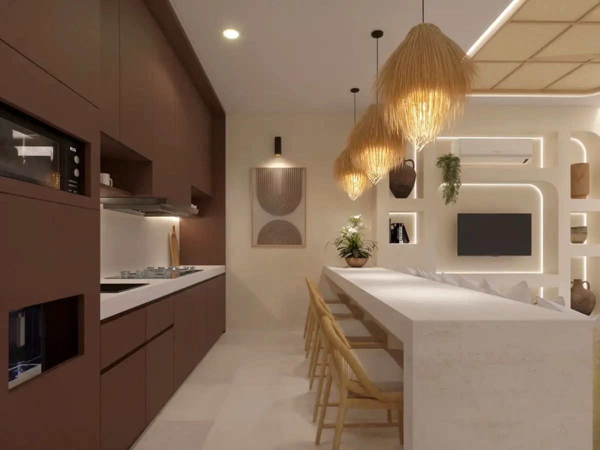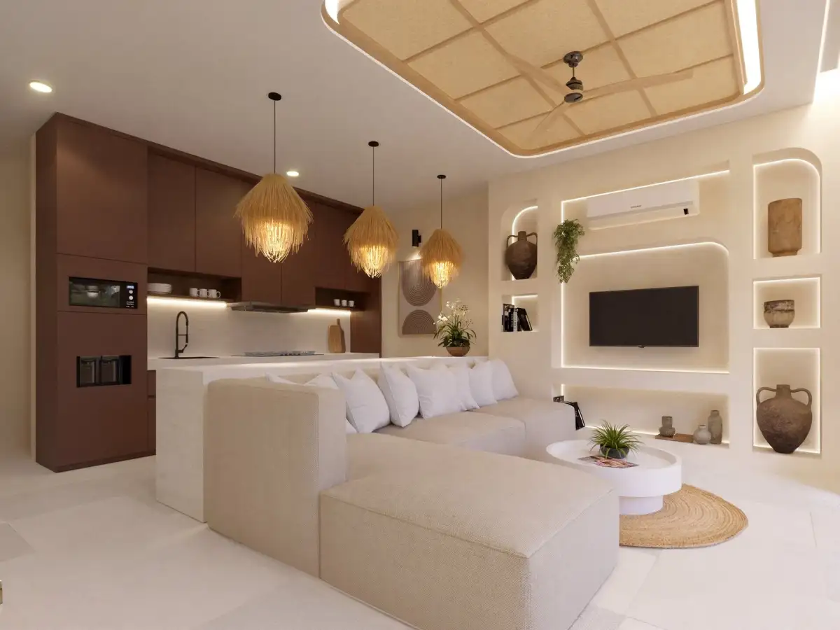 Standard zahrnuje kompletní vybavení v režimu „turnkey“ – včetně nábytku, spotřebičů, dekorací, klimatizace ve všech obytných místnostech a moderních technologií, jako je smart home řešení, optický internet, CCTV či chytré zabezpečení. Nemovitost je tak připravena k okamžitému využití i bezstarostnému krátkodobému pronájmu.