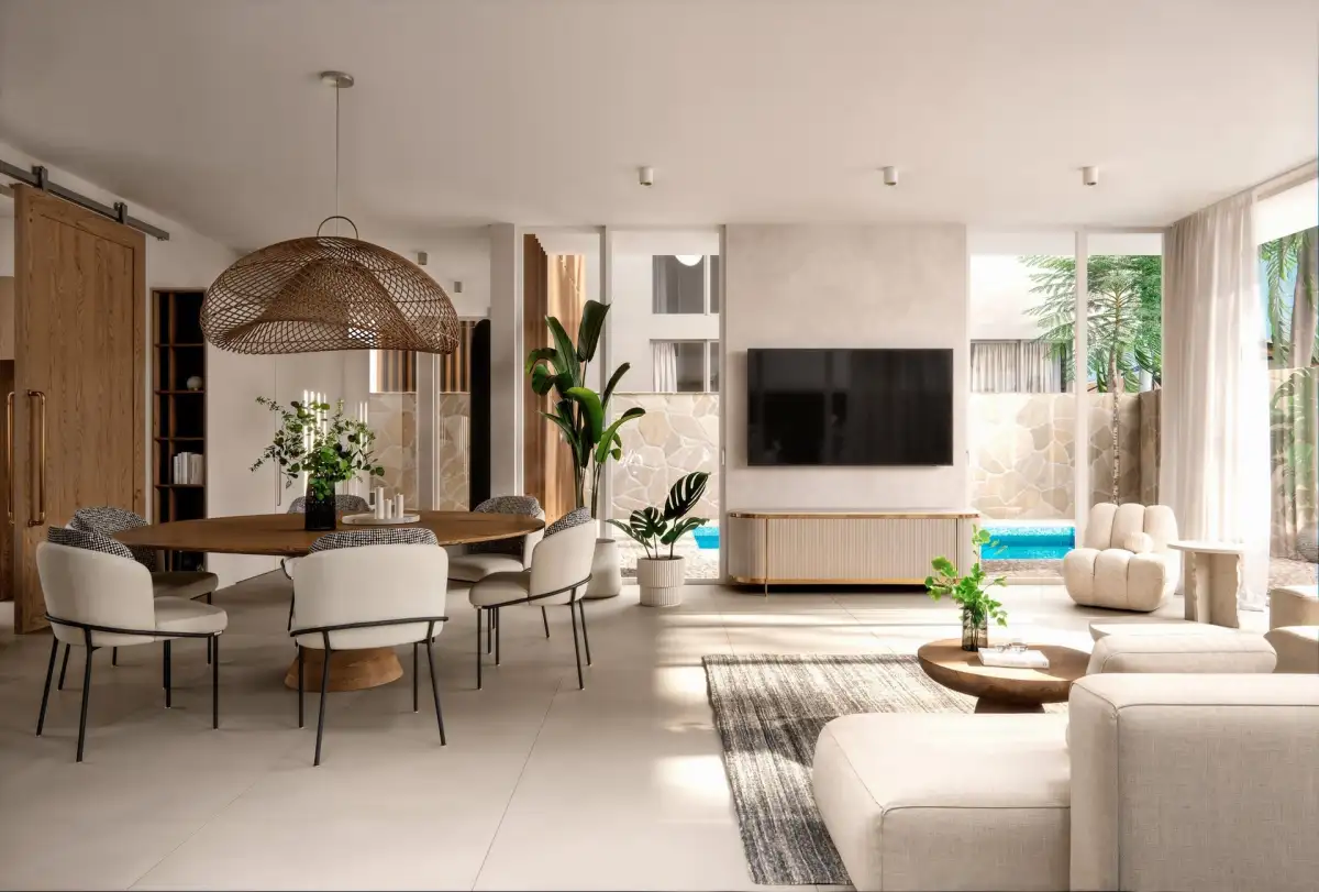 Interiéry vil spojují mramorové a dřevěné povrchy s precizními detaily, což vytváří harmonii mezi moderním luxusem a tradičním balijským šarmem. Projekt nabízí špičkové technologie a služby, včetně možnosti sledování nemovitosti prostřednictvím bezpečnostních kamer, prvotřídní úklidové služby na úrovni pětihvězdičkového hotelu a týmu zkušených údržbářů, kteří se postarají o dokonalý stav vaší vily. K dispozici je také systém měsíčních kontrol, které vás pravidelně informují o aktuálním stavu vaší nemovitosti a umožní vám ji spravovat i na dálku.