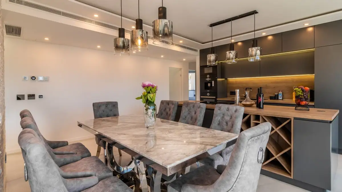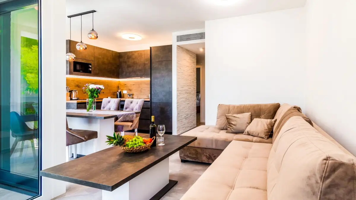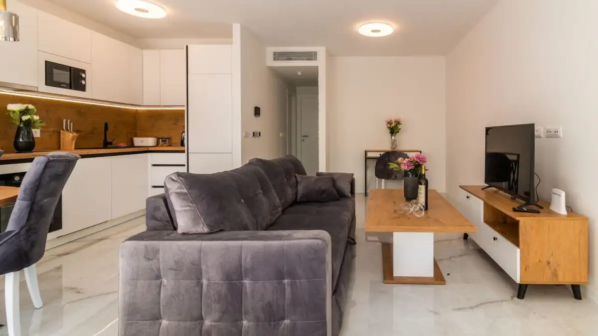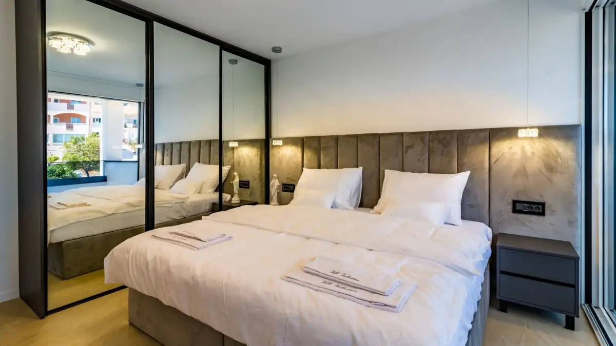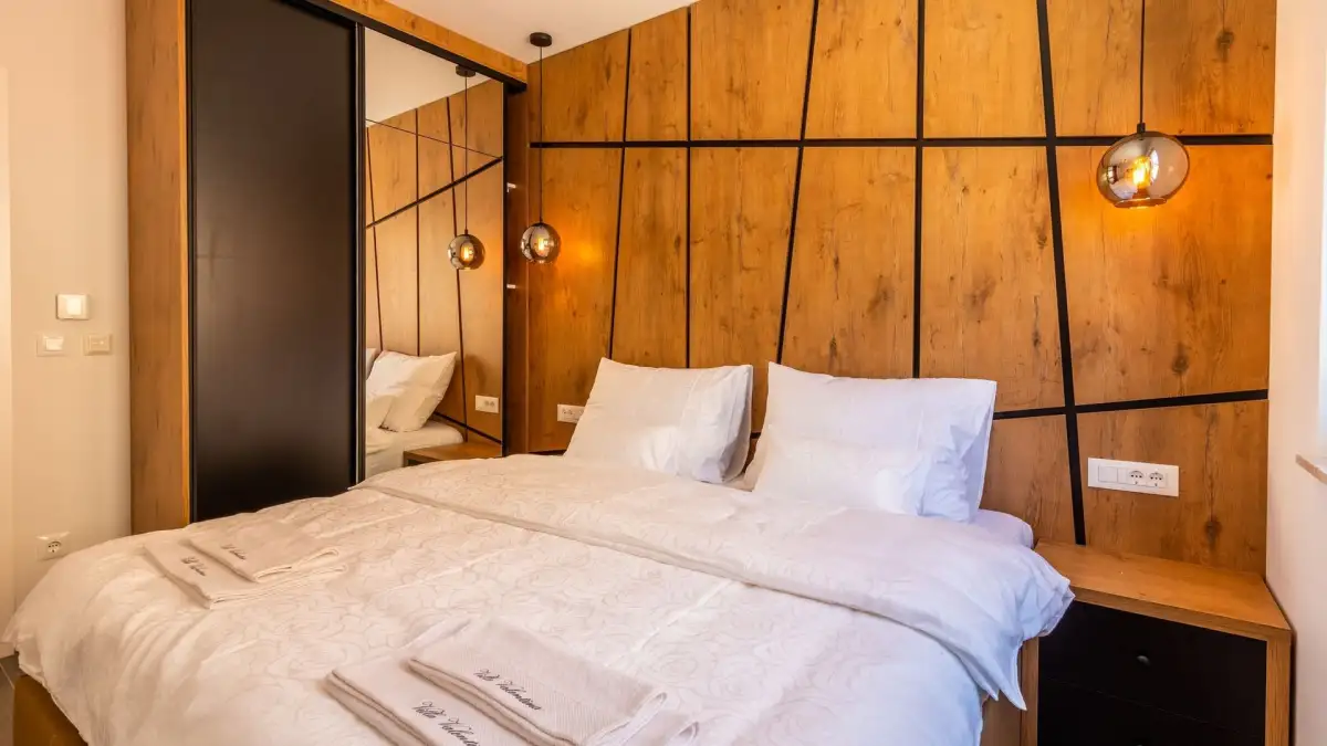 Interiéry apartmánů jsou vybaveny vestavěnými skříněmi, podhledovým LED osvětlením a nejmodernějšími domácími spotřebiči. Komfort zajišťuje podlahové vytápění, stěnové topení a kanálová klimatizace v každé místnosti. Vila je navržena v souladu s nejnovějšími standardy moderního bydlení, s důrazem na eleganci, pohodlí a technologickou vybavenost.