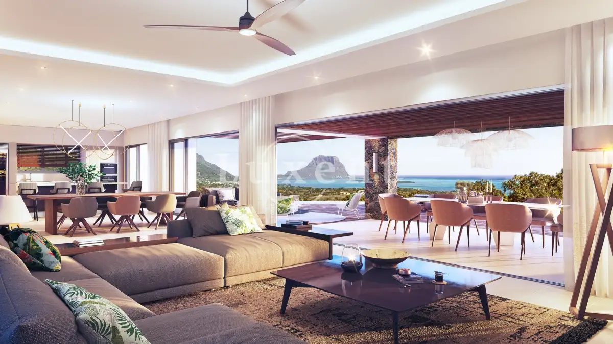 Nabízíme k prodeji majestátní vilu 5+kk s vlastním bazénem (30 m2) na rozsáhlém soukromém pozemku (1 428 m2) v nově vznikajícím luxusním projektu Montana Oceano na jihozápadě ostrova Mauricius. Poslední volná vila leží uprostřed svěží tropické přírody ve výšce 142 metrů nad mořem a nabízí úchvatné výhledy na horu La Tourelle, přístav a Indický oceán.
