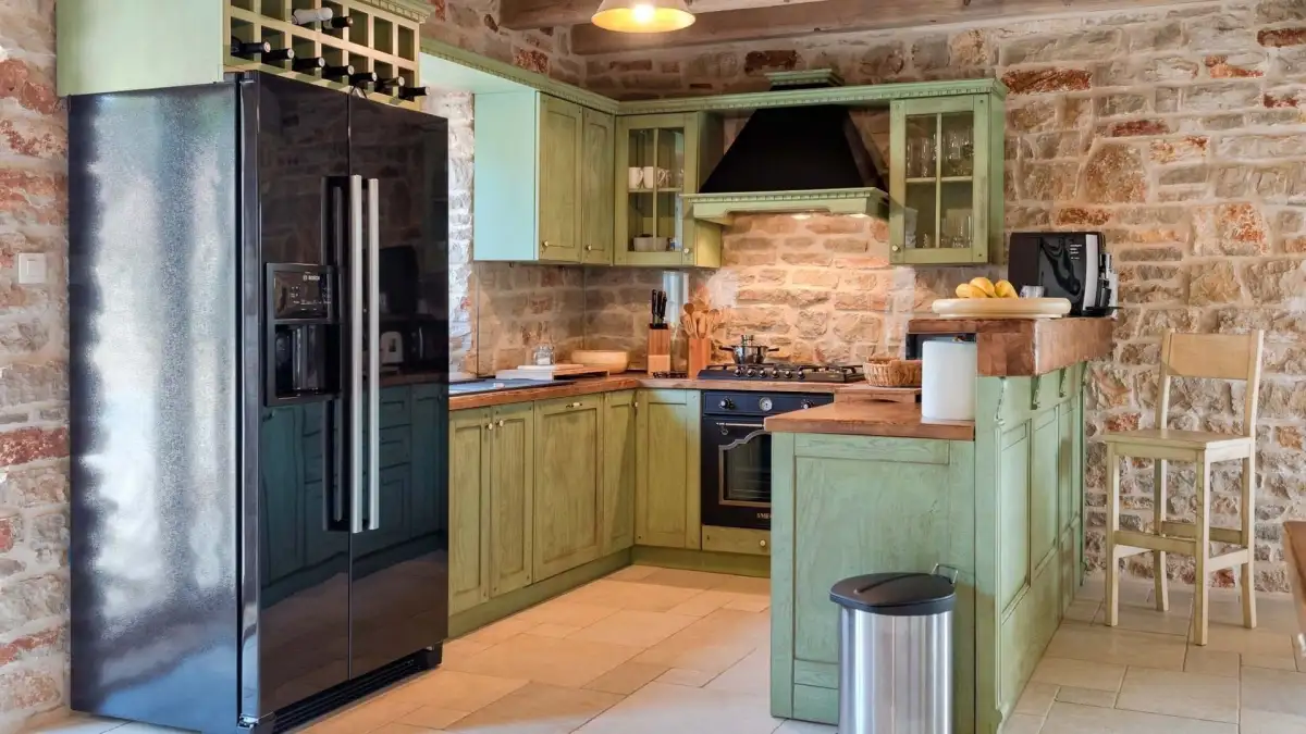 Na pravé straně pozemku se nachází tři samostatné domky. První slouží jako letní kuchyně s kamenným grilem, pecí na chléb a prostorným jídelním zázemím. Druhý nabízí technickou místnost, koupelnu a ložnici v podkroví. Třetí dům zahrnuje velkou ložnici s vlastní koupelnou. Celý areál tak poskytuje flexibilní možnosti ubytování pro rodinu, hosty nebo rekreační pronájem.