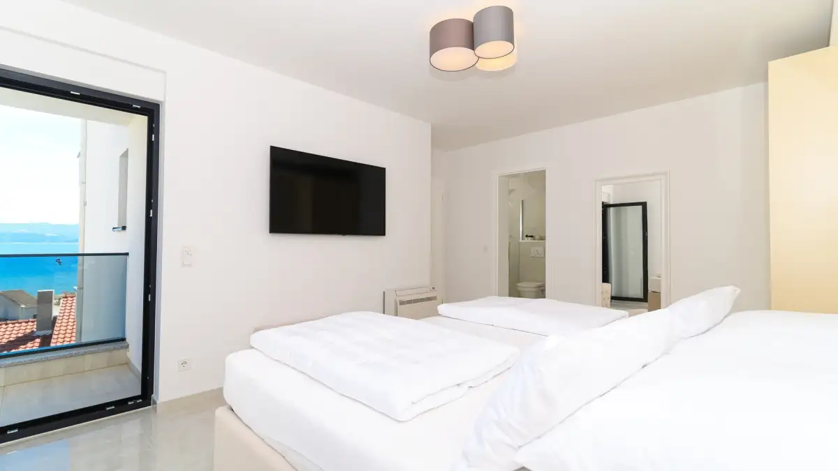 Ve druhém a třetím podlaží se nachází dvě identické bytové jednotky – každá se skládá ze dvou ložnic s vlastní koupelnou, otevřeného obytného prostoru propojujícího kuchyň, jídelnu a obývací pokoj s přístupem na lodžii s výhledem na moře, a samostatného WC.